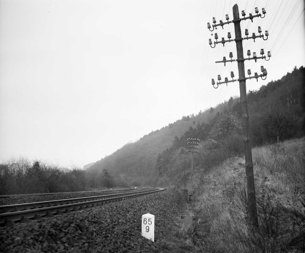 km 65,9 bei Bengel - Man achte auch auf die Telegrafenleitung