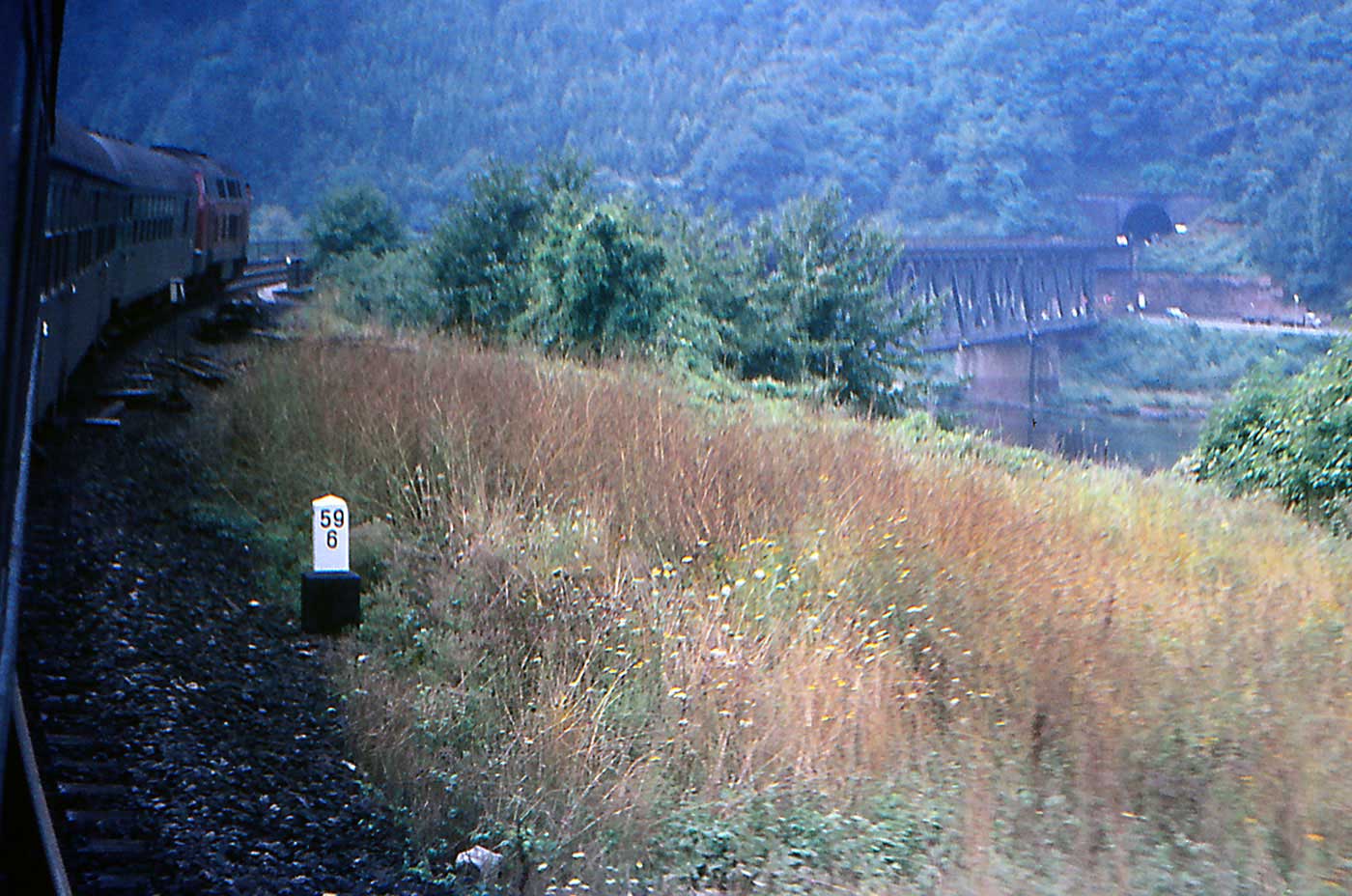 Koblenz Hbf 0,0 - Trier Hbf 111,57 - Perl 159,05 - Grenze Deutschland/Frankreich 159,512 = [km 22,176 - Apach 21,157 - Thionville (Diedenhofen) 0,0] (1980)