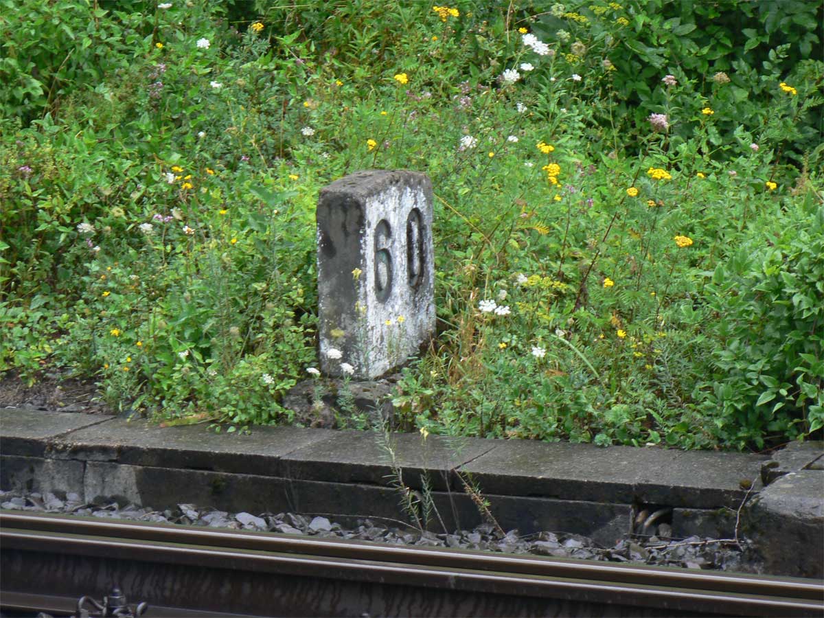 km 76,4 (Tafel) und km 76,5 (Stein) in Wengerohr (heute: Wittlich Hbf) - Blick Richtung Koblenz