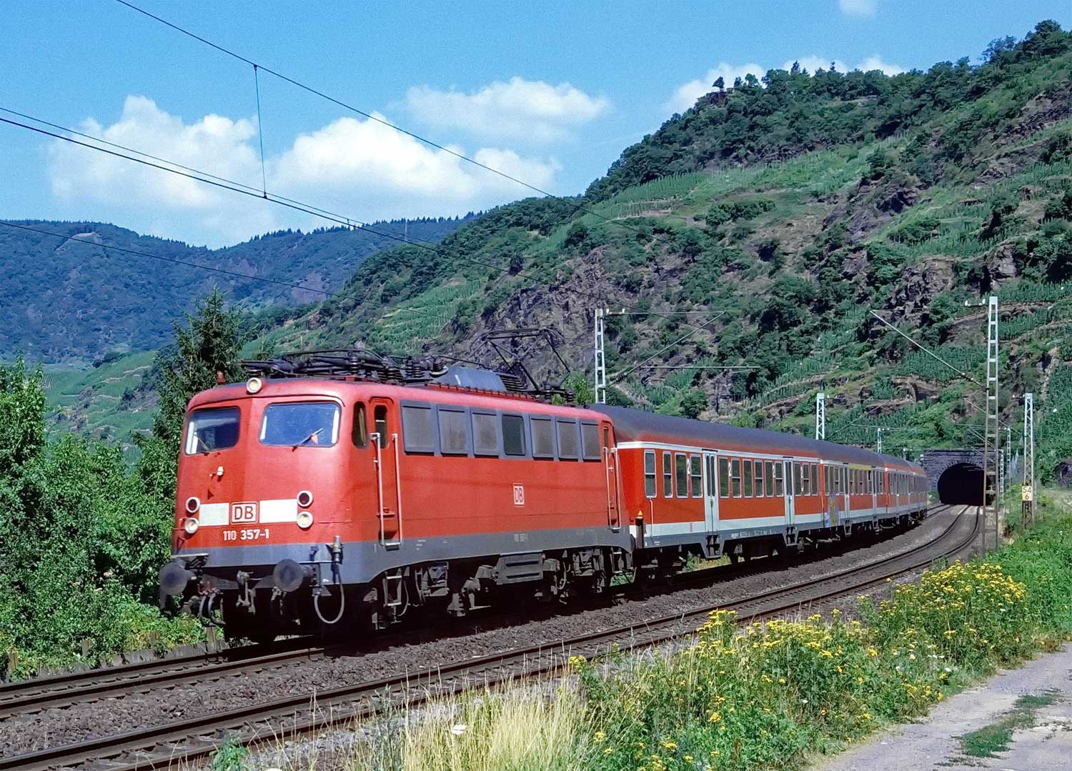 044 277 verlässt auf ihrer Fahrt in Ri Koblenz gerade den Tunnel