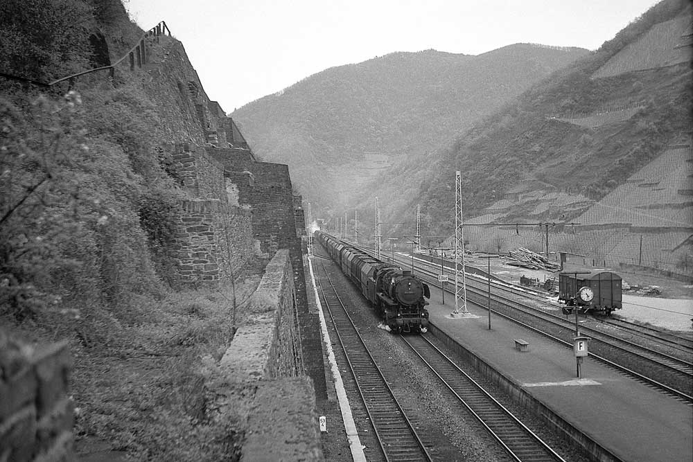Der nächste Güterzug zeigte dann eine Doppelbespannung. 044 573 des Bw Koblenz-Mosel und 044 014 des Bw Ehrang teilten sich die Aufgabe. Beim Betrachten des Bildes möge man sich einmal die Geräuschkulisse vorstellen!