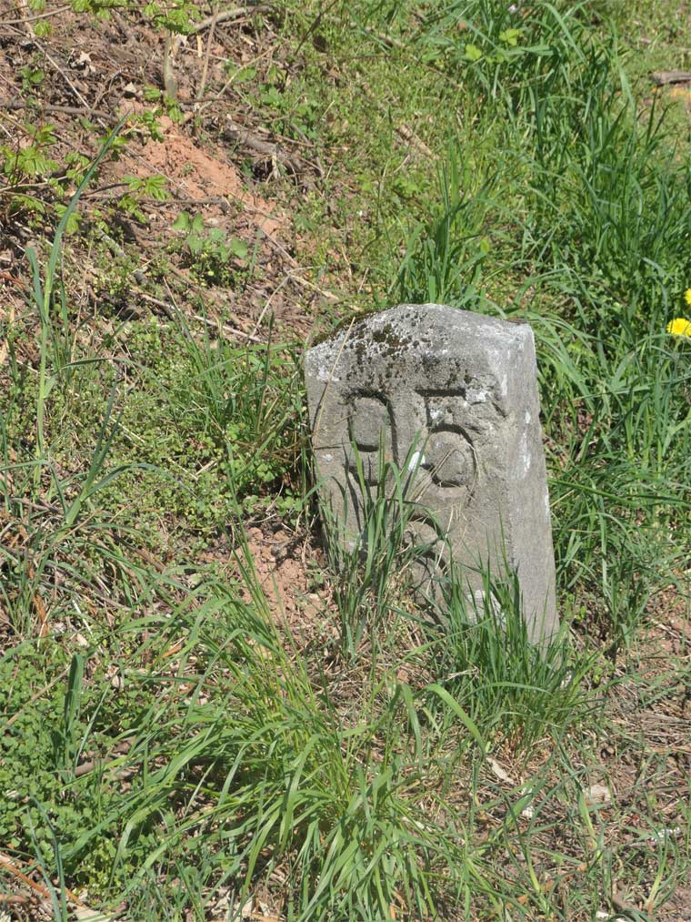 km 92,0 (Tafel rechts) und km 92,2 (Stein links) in Hetzerath - Blick Richtung Koblenz