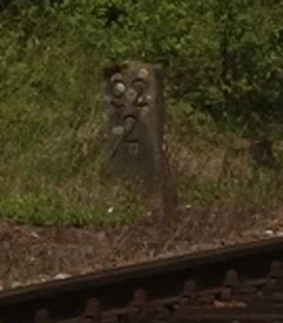 km 76,4 (Tafel) und km 76,5 (Stein) in Wengerohr (heute: Wittlich Hbf) - Blick Richtung Perl