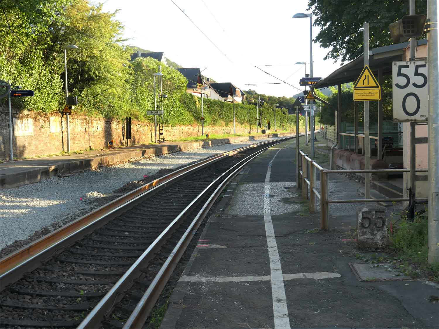 km 76,4 (Tafel) und km 76,5 (Stein) in Wittlich Hbf (früher: Wengerohr) - Blick Richtung Koblenz