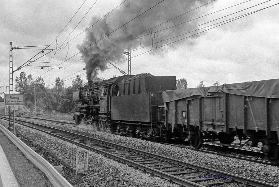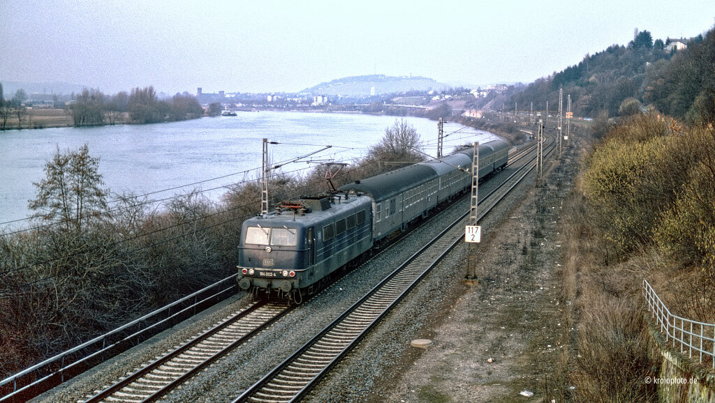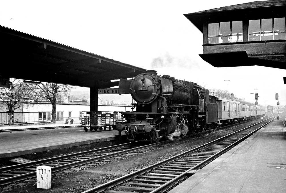Koblenz Hbf 0,0 - Trier Hbf 111,57 - Perl 159,05 - Grenze Deutschland/Frankreich 159,512 = [km 22,176 - Apach 21,157 - Thionville (Diedenhofen) 0,0] (1980)