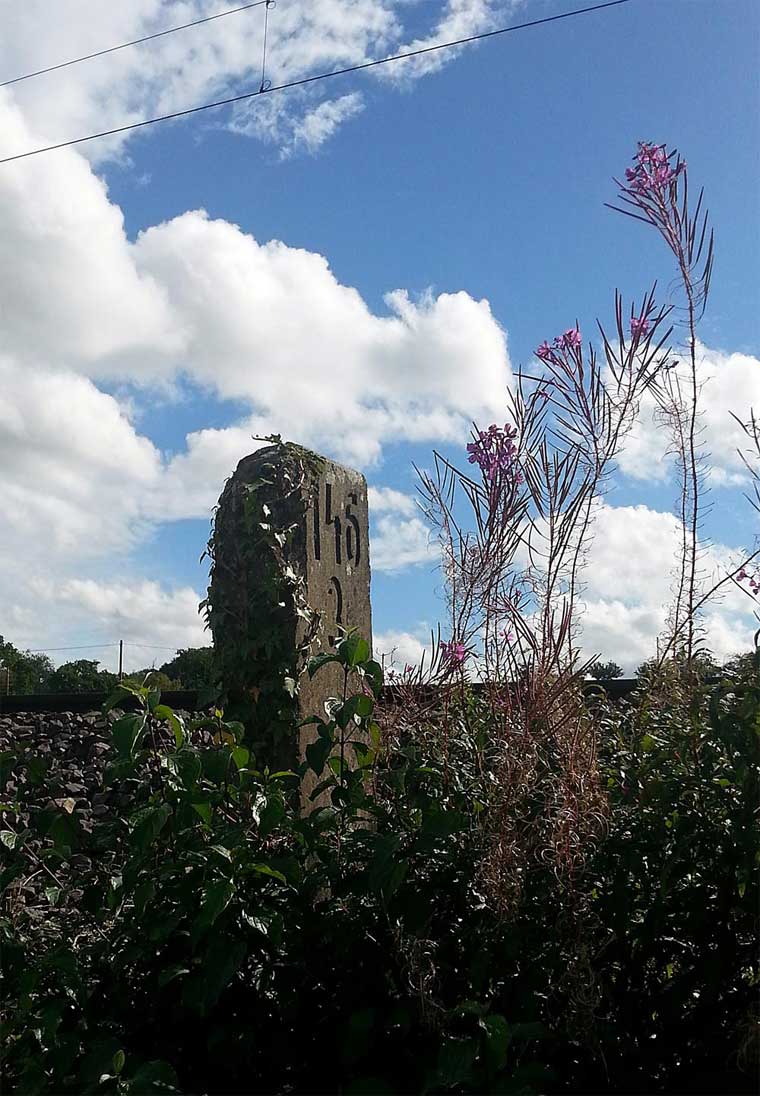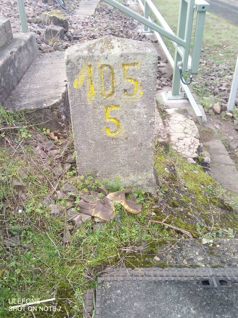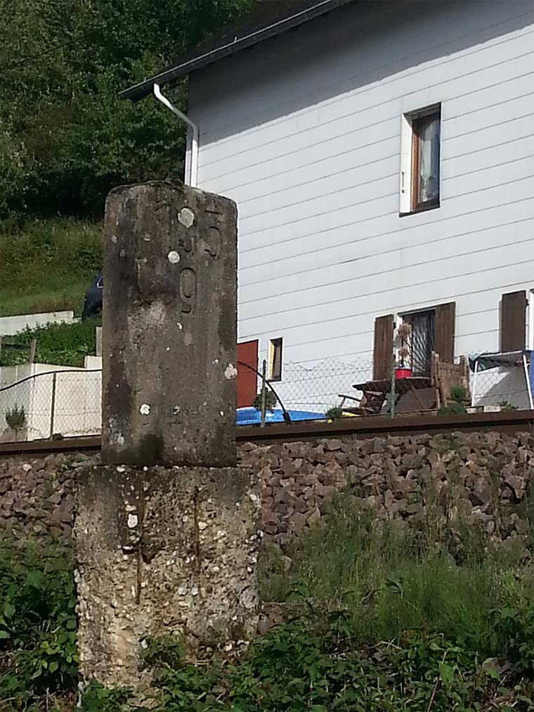 km 123,4 (Stein und Tafel) in Wasserliesch - Blick Richtung Perl