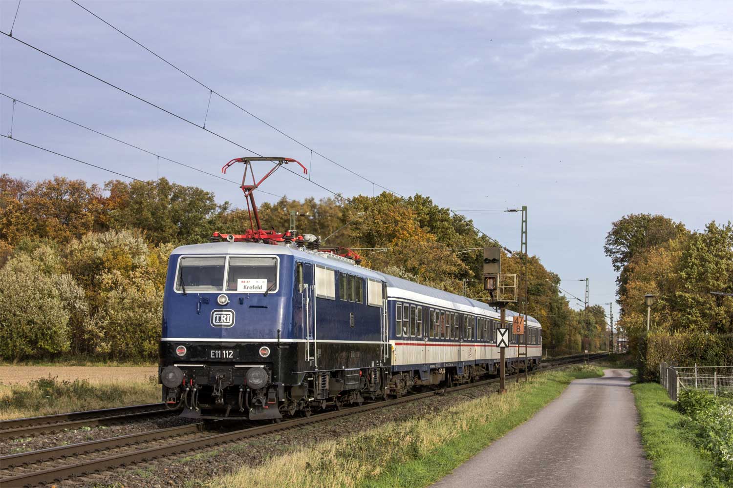 Als Schlusslok die 110 474, die den Zug dann ab Krefeld unter dem Fahrdraht weiter beförderte