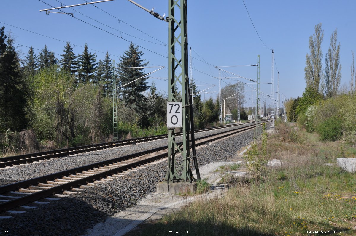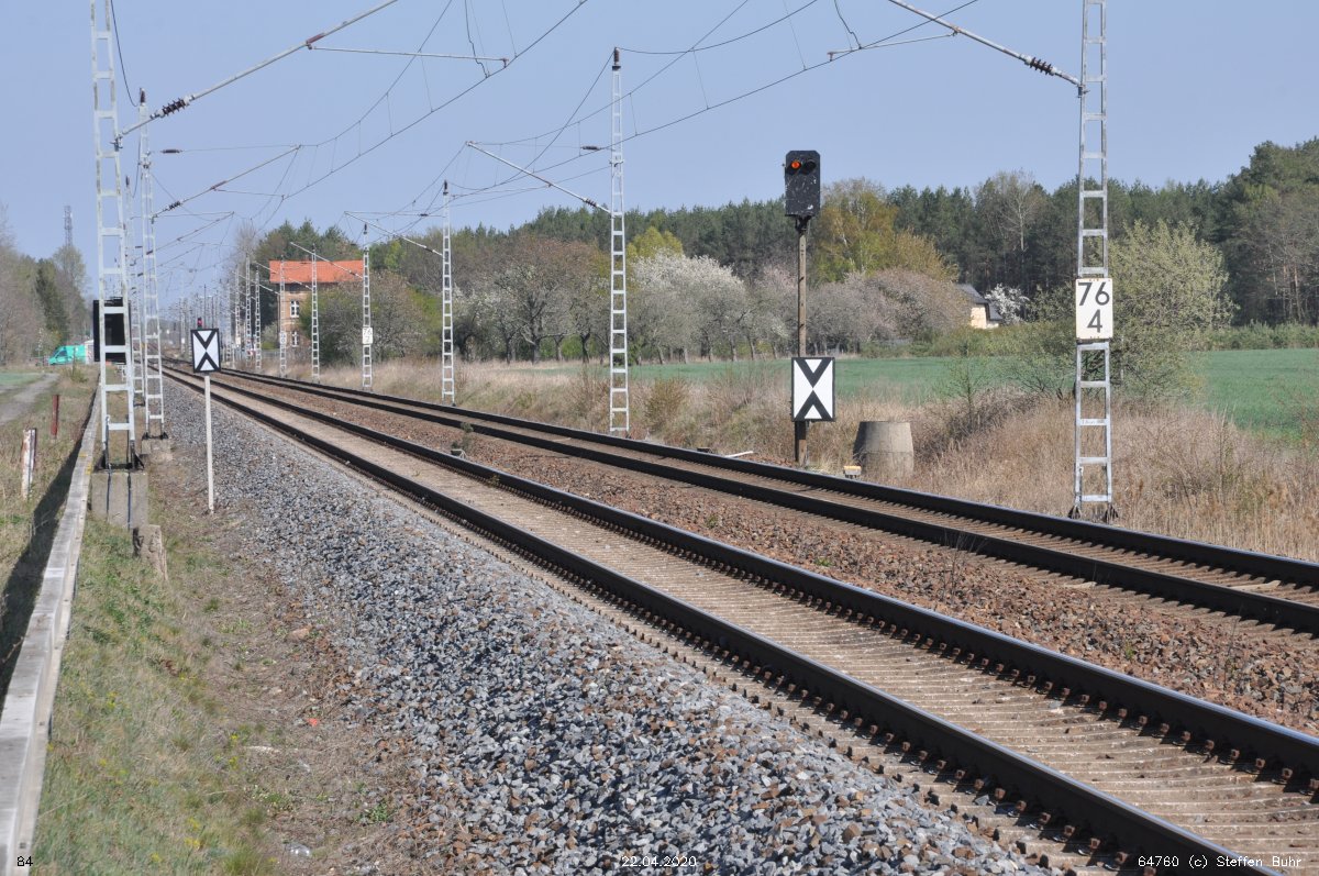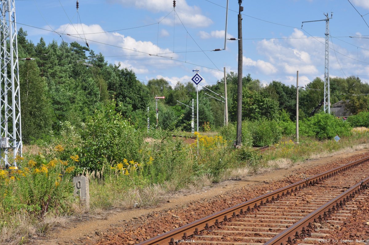 km 0,31 der Strecke Falkenberg (Elster) 0,31 - Uckro 49,39 - Luckau 57,39 - Lübben Hp 73,2 - Beeskow 113,662 | ||