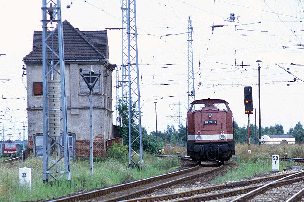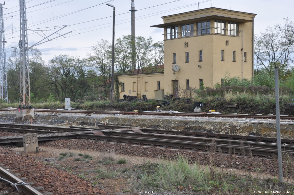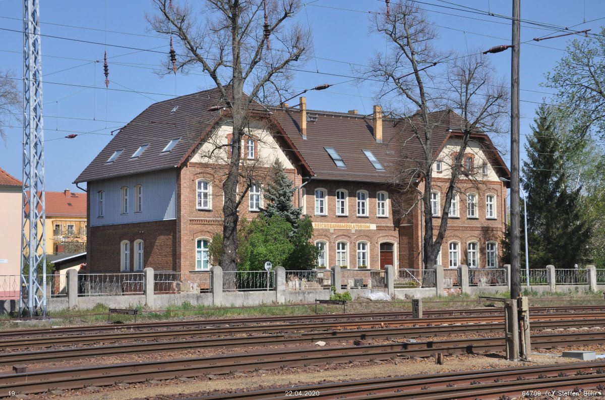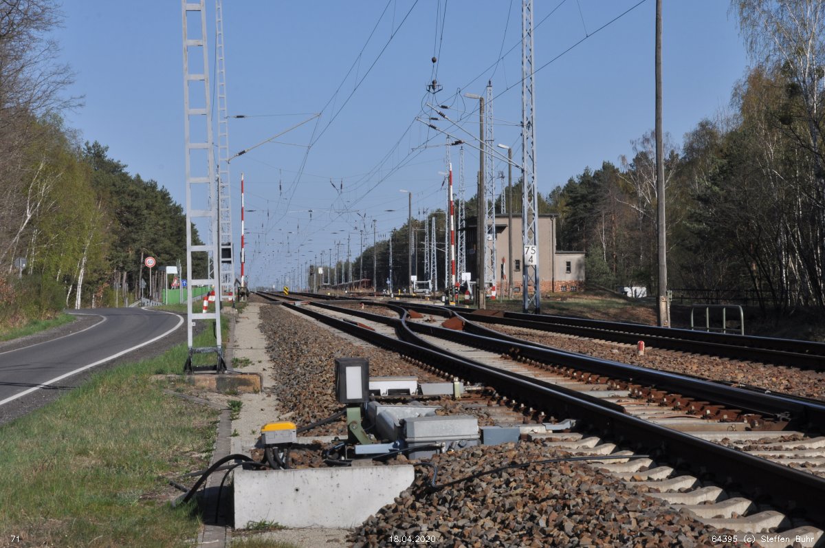 km 0,31 der Strecke Falkenberg (Elster) 0,31 - Uckro 49,39 - Luckau 57,39 - Lübben Hp 73,2 - Beeskow 113,662 | ||