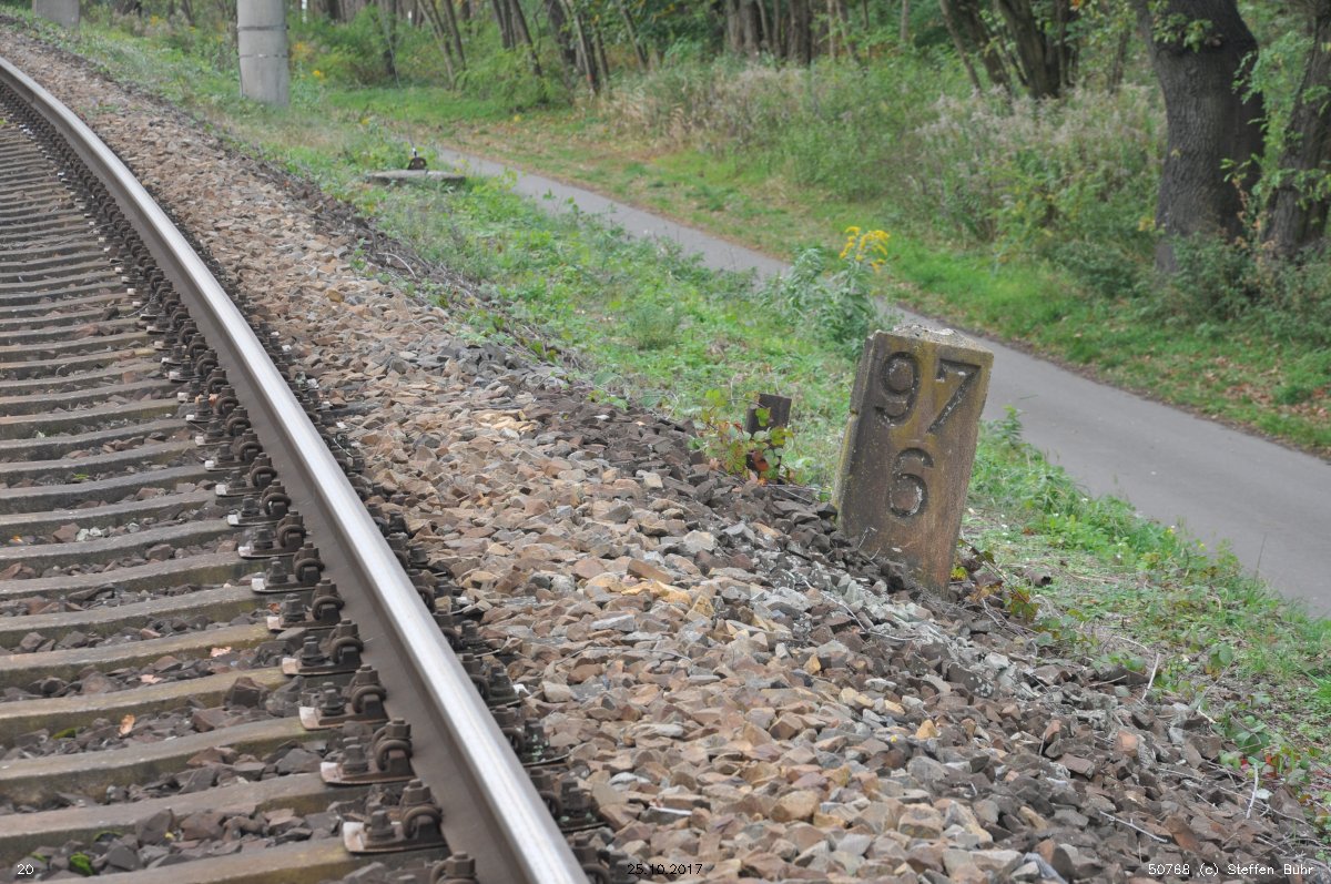 Überlänge | 1500 m | km 61,40 + 1700 m = km 61,60 Umverlegung der Strecke wegen Tagebau 1962 |