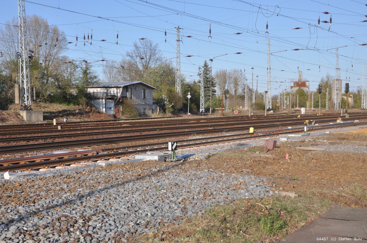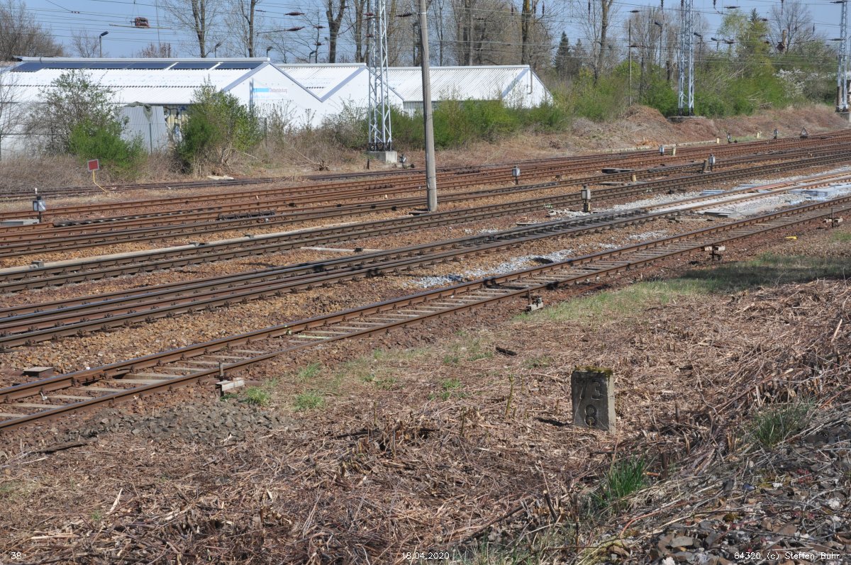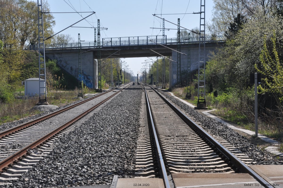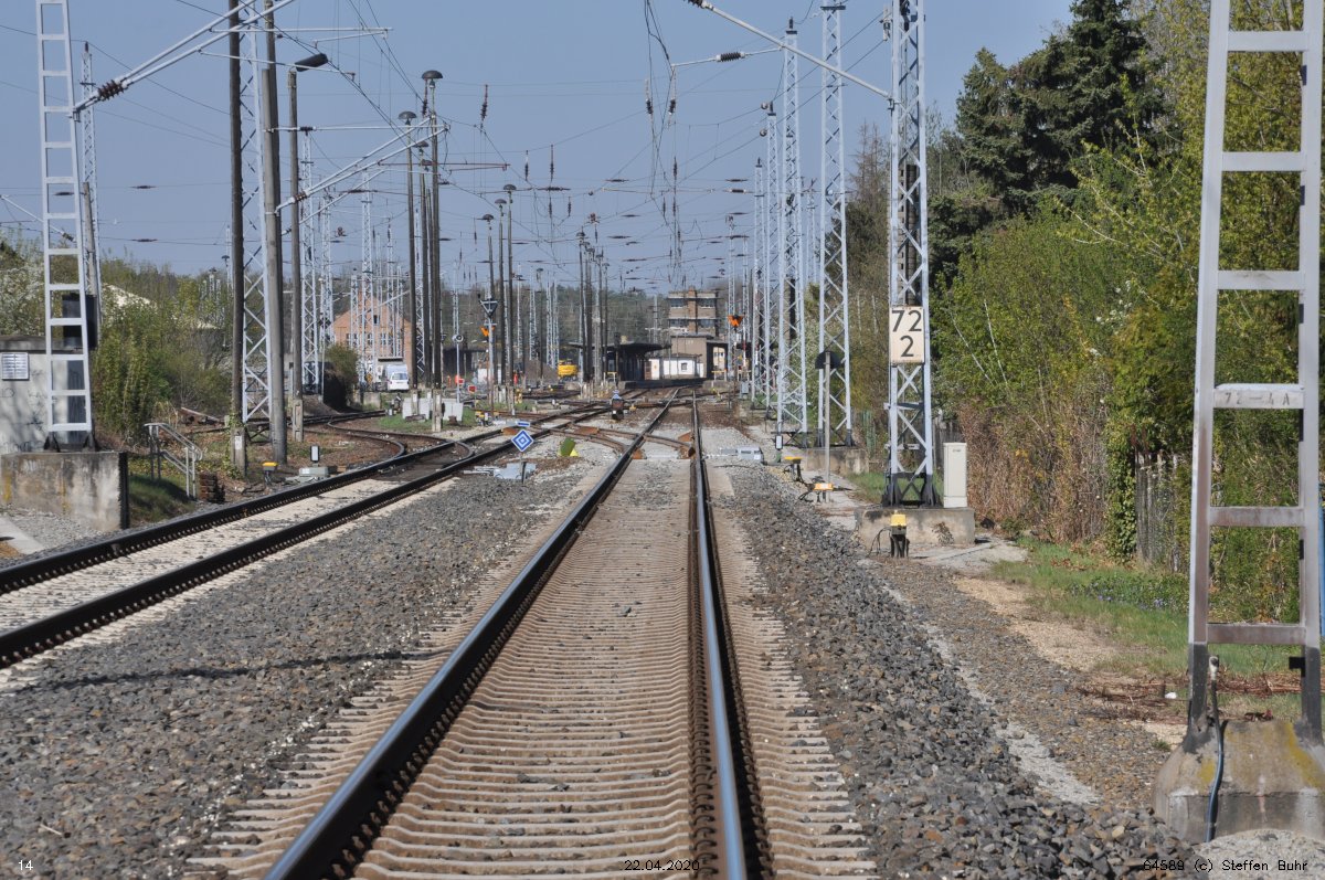 Das Gleis links war mal die 6198 (Südbahn, heute nur noch Ausziehgleis) und führte über die Brücke im Hintergrund,