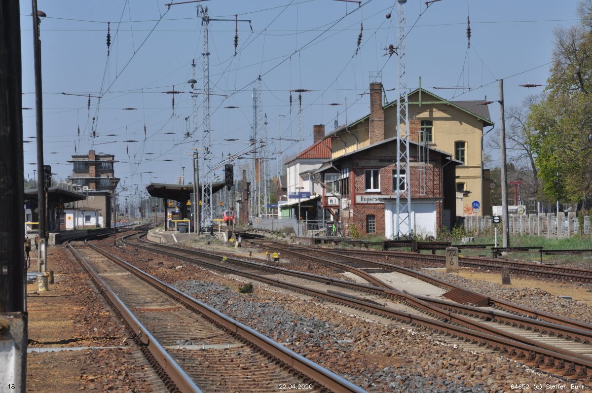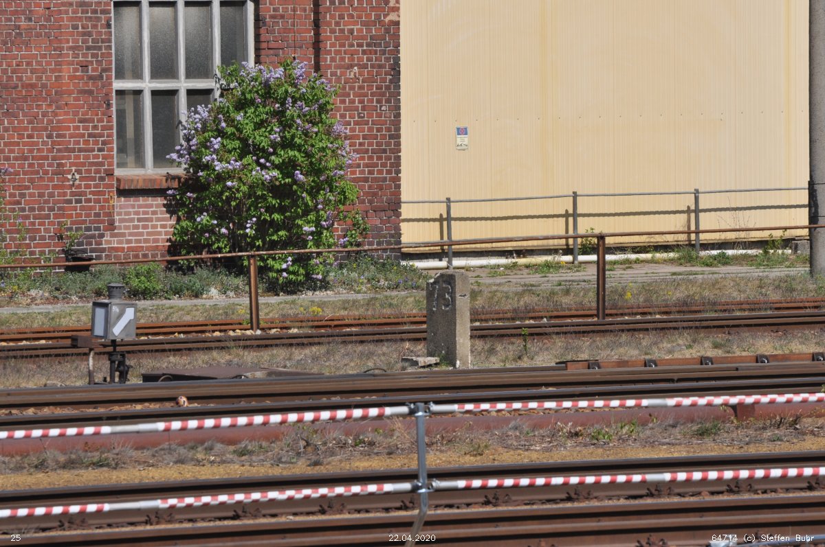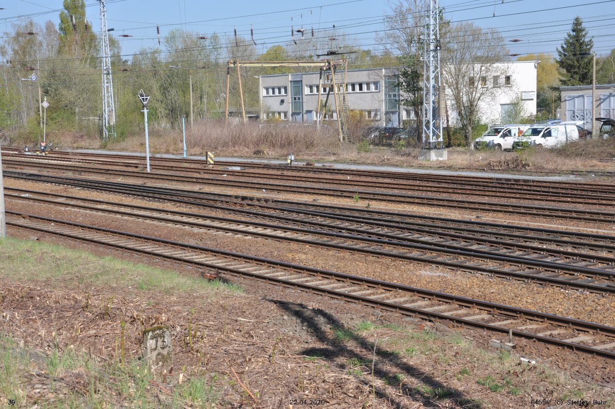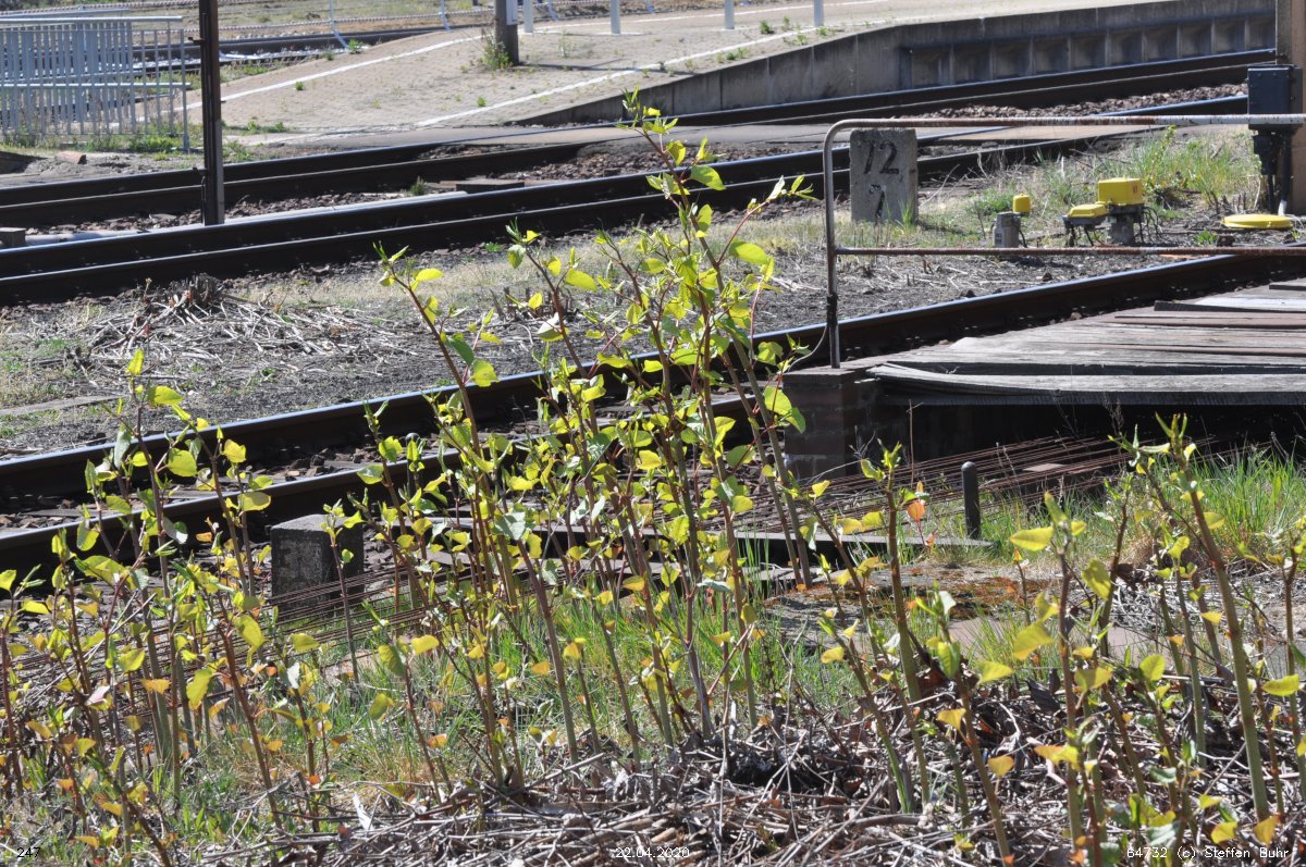 Das Gleis links war mal die 6198 (Südbahn, heute nur noch Ausziehgleis) und führte über die Brücke im Hintergrund,