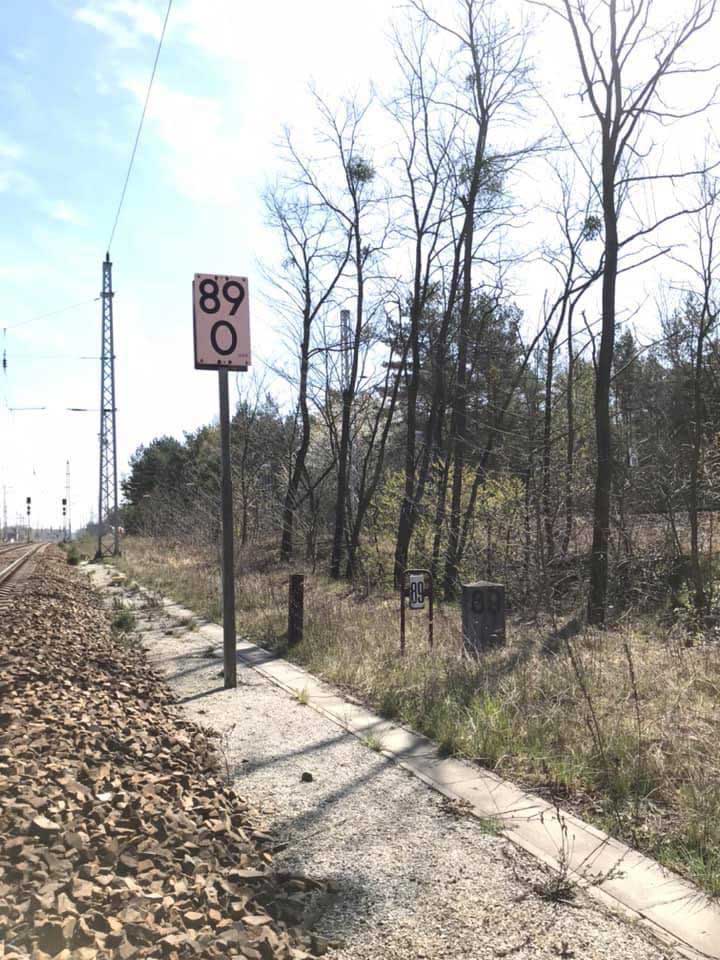 km 99,5 (Stein) und km 99,6 (Tafel) zwischen Ruhland und Lauchhammer Süd