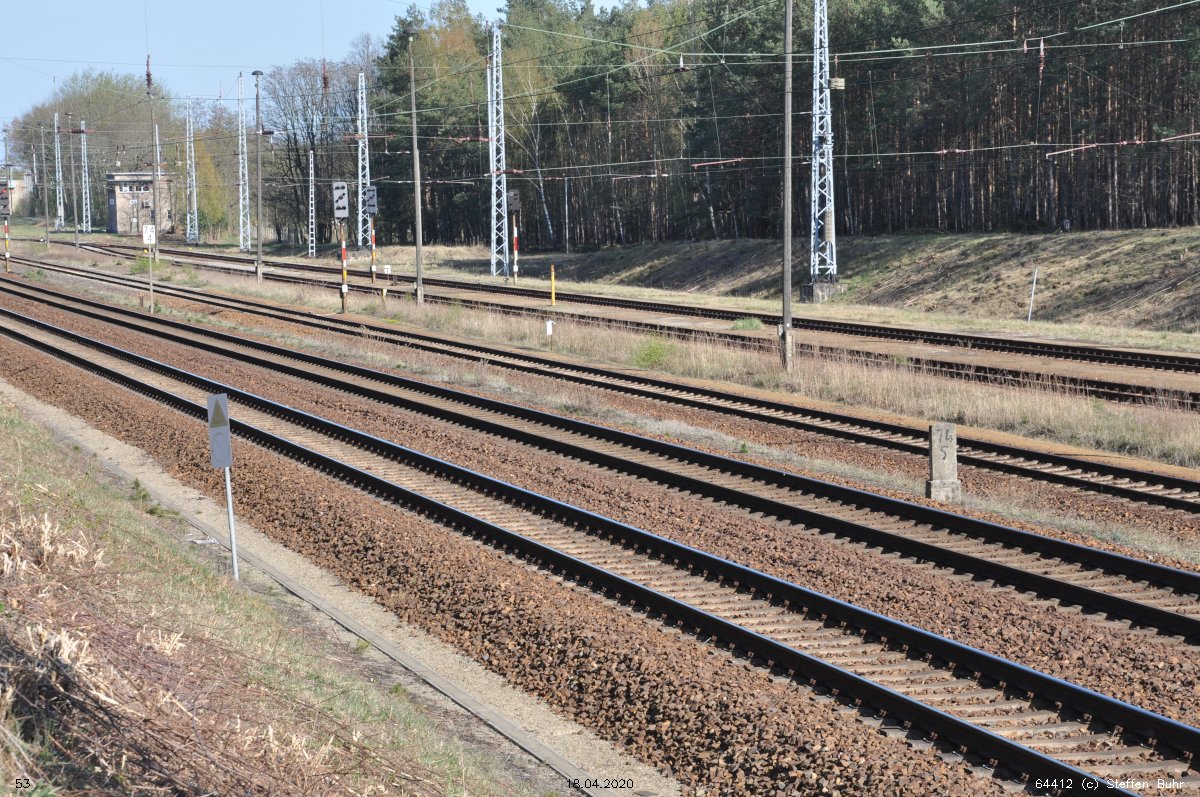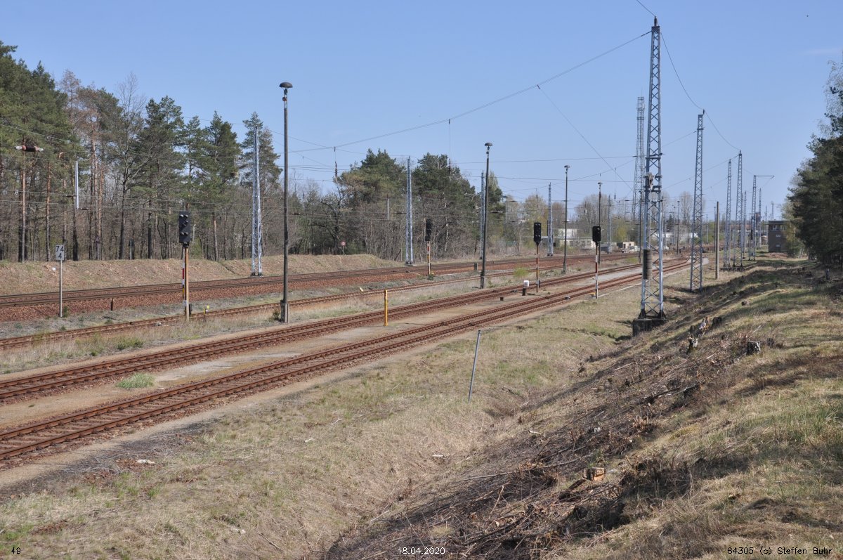 Rechts oben die Strecke Abzw Peickwitz 7,332 - Hosena, W 56, km 8,802 (6199 Nordbahn)