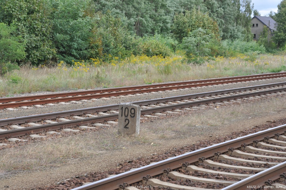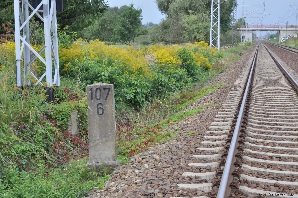 km 107,4 (Stein und Tafel) zwischen Lauchhammer Süd und Lauchhammer West