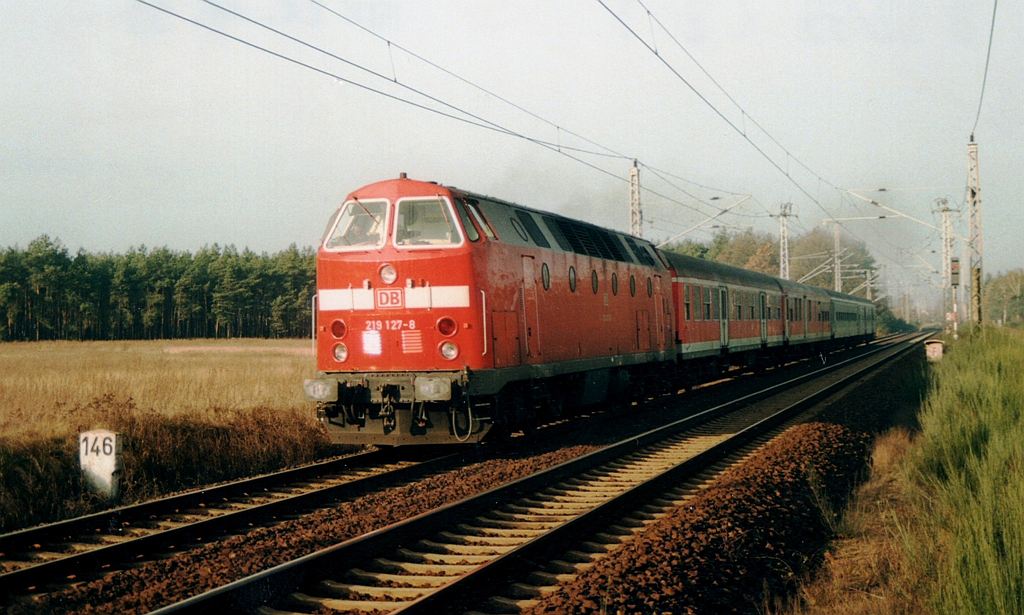 219 003 mit RB nach Görlitz am ehem. Hp. Beiersdorf - hier am km 142,9