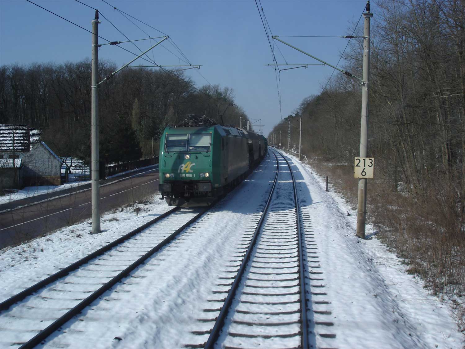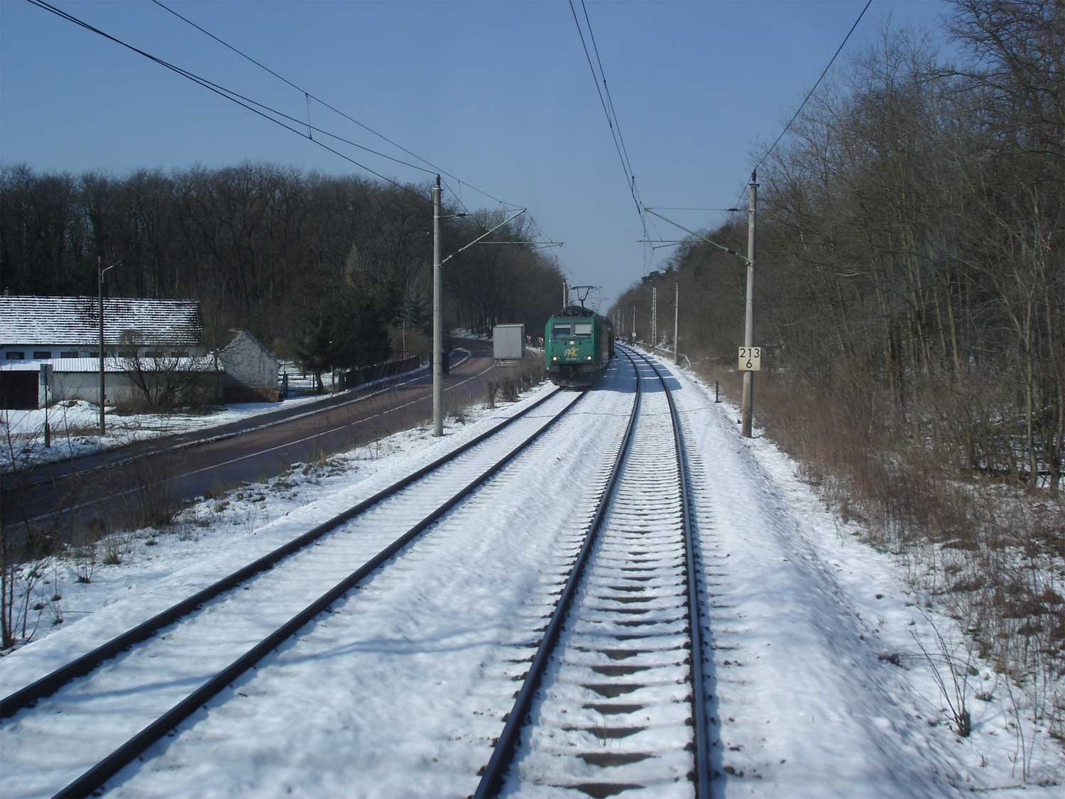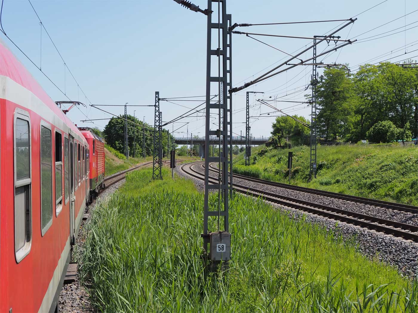 km 232,6 (hinter dem Oberleitungsmast) gehört zum Streckenast