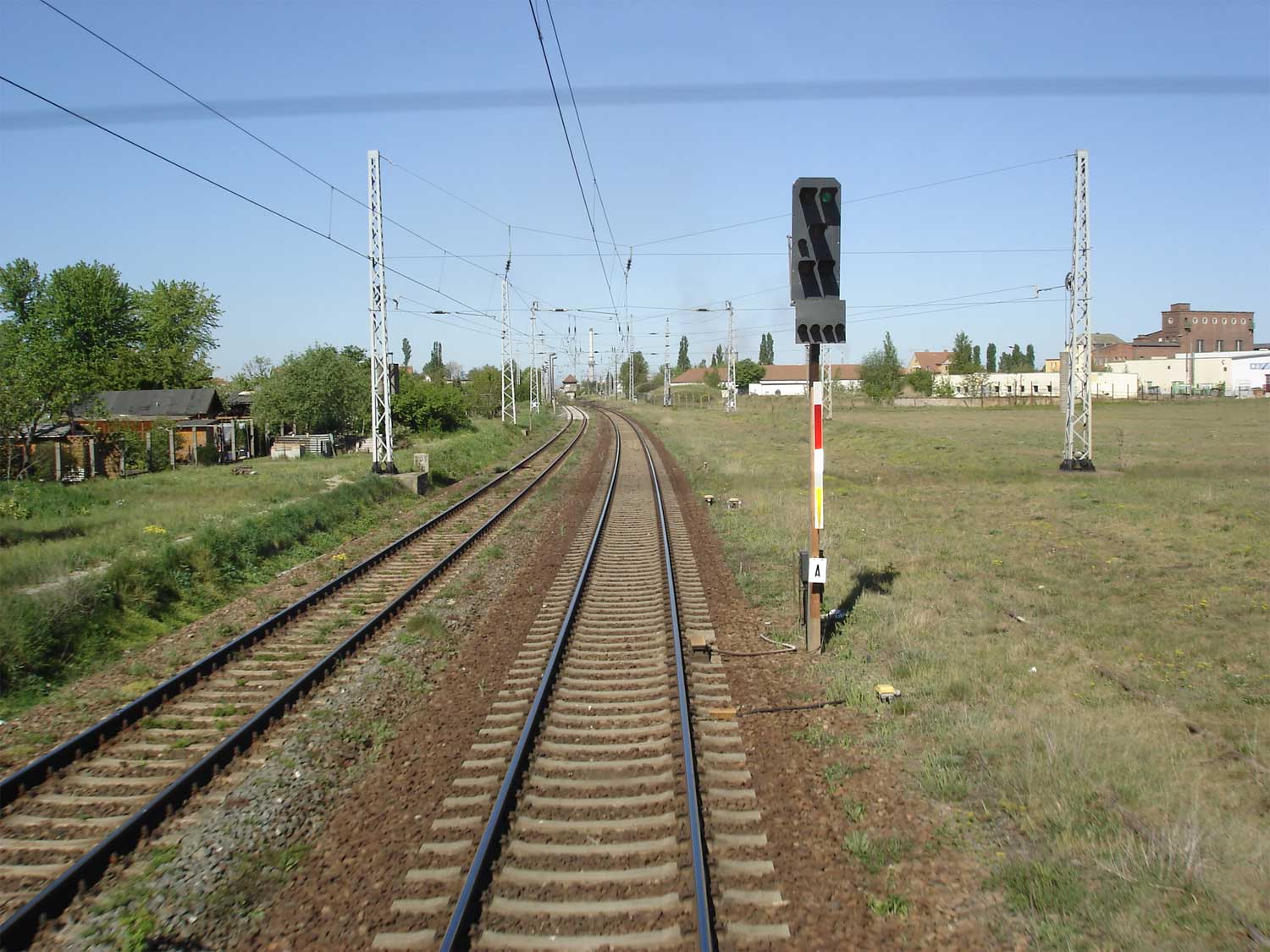 km 0,31 der Strecke Falkenberg (Elster) 0,31 - Uckro 49,39 - Luckau 57,39 - Lübben Hp 73,2 - Beeskow 113,662 | ||