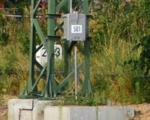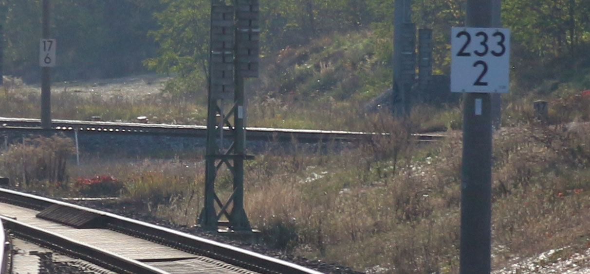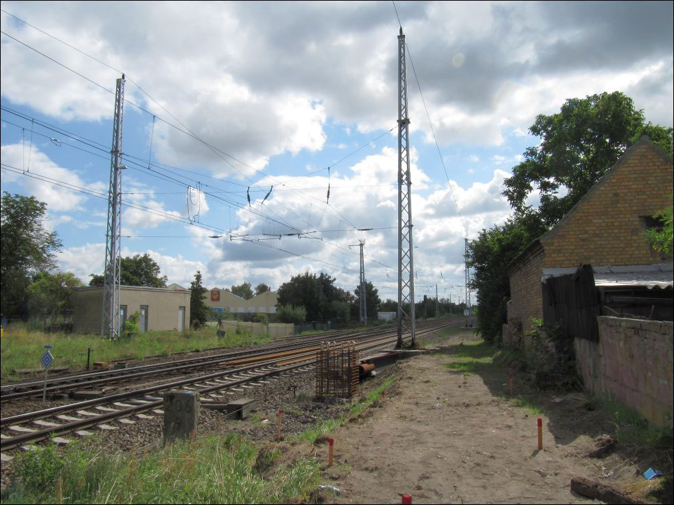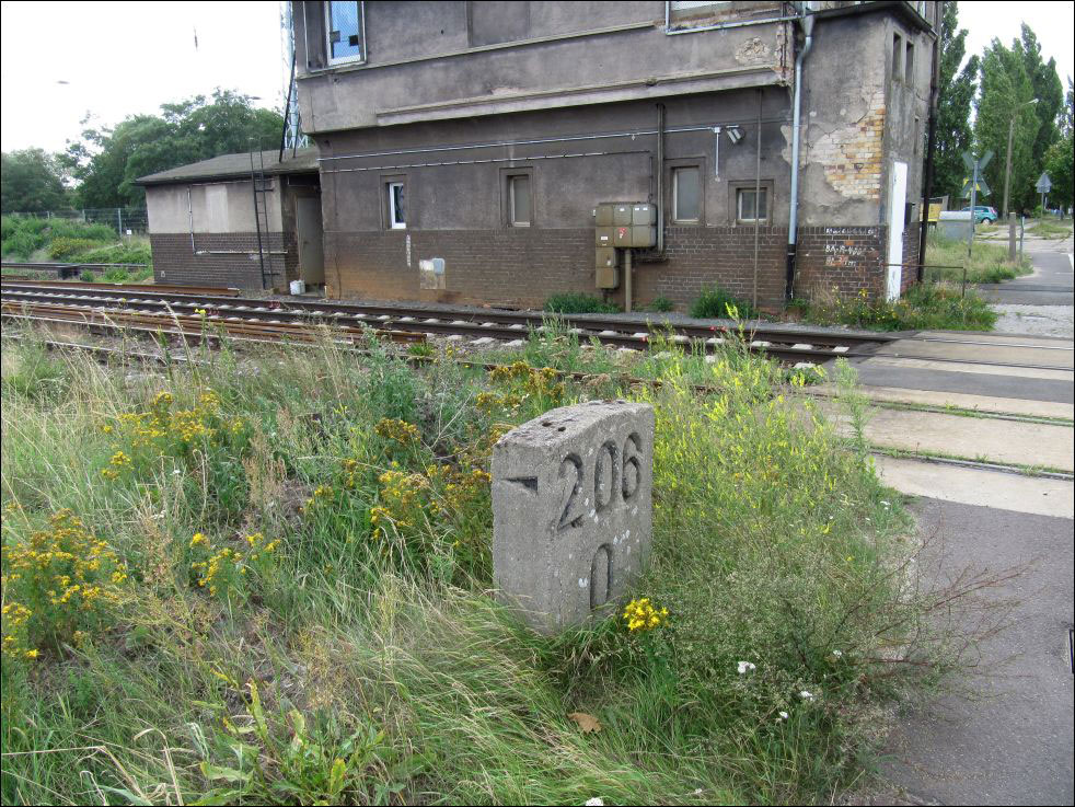 km 233,6 (rechts hinter dem Oberleitungsmast) in Roßlau (Elbe) - Detail
