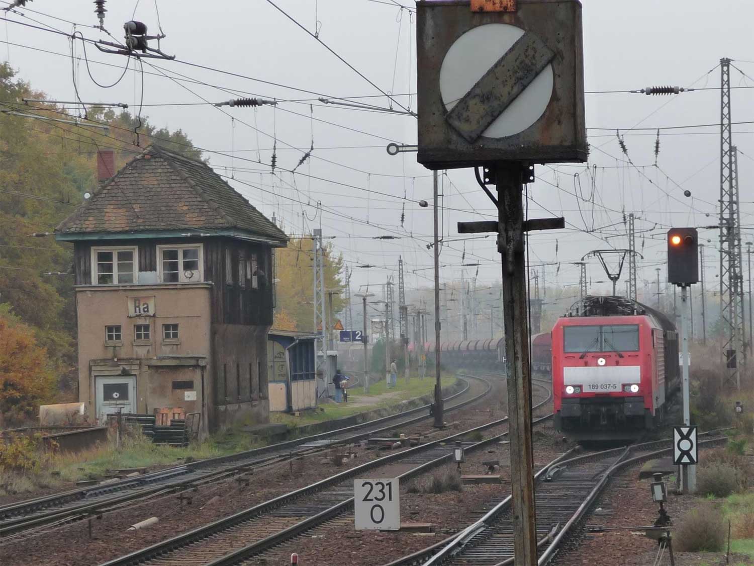 Rechts hinter dem Stellwerk