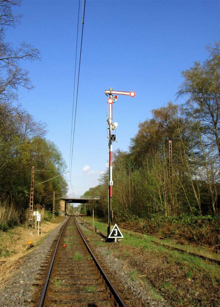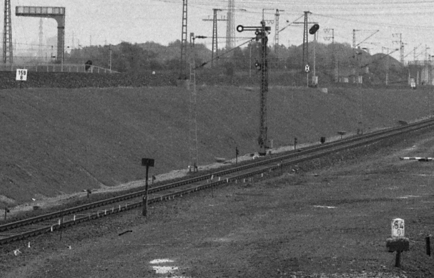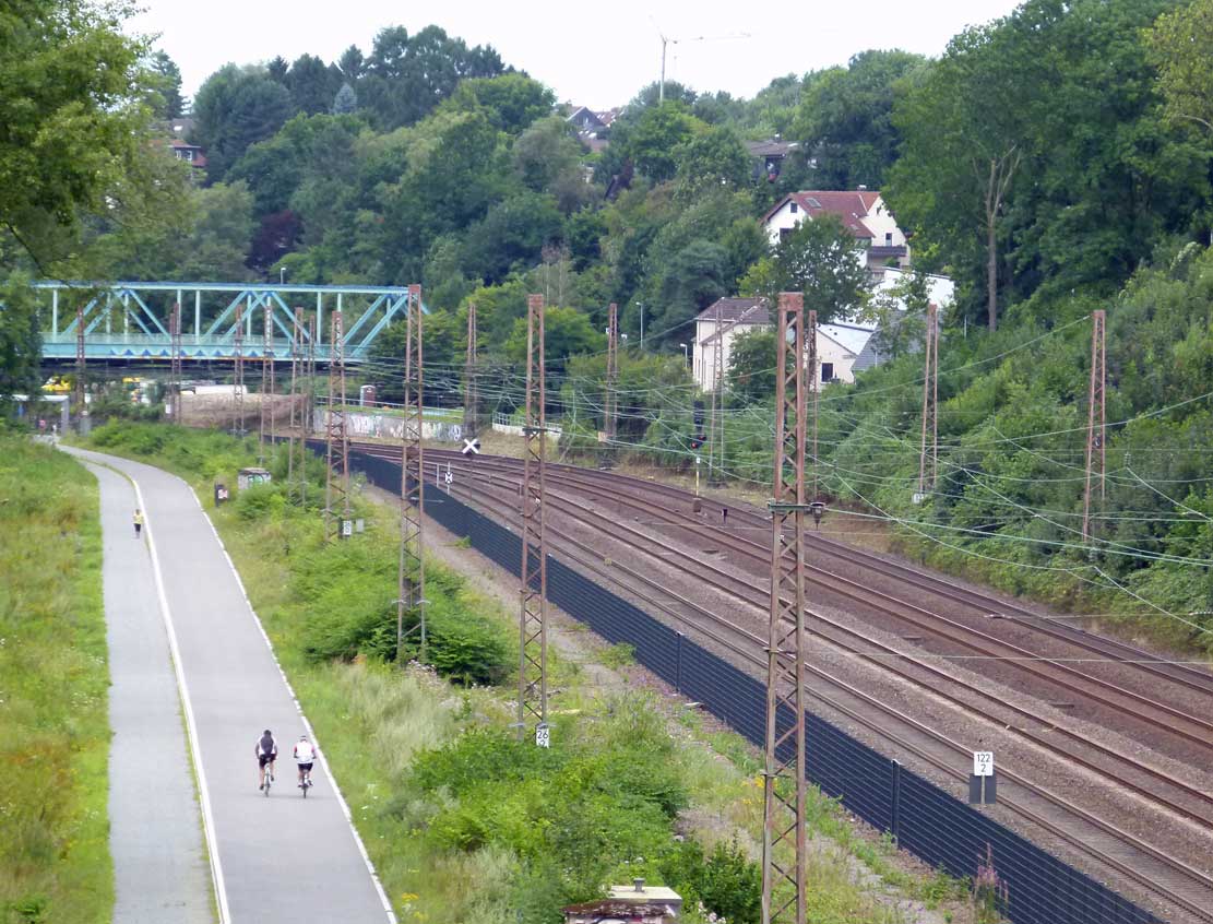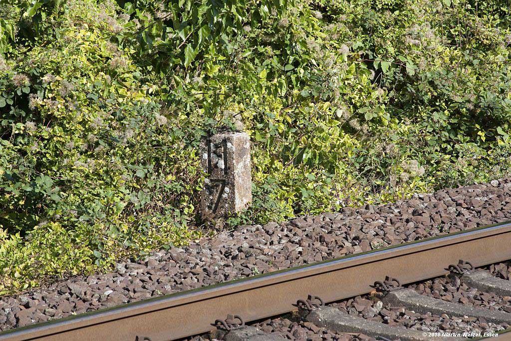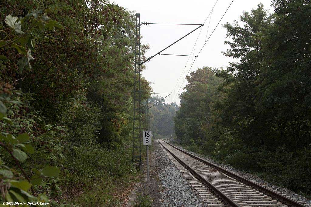km 25,6 (rechts hinter den Büschen) zwischen Mülheim (Ruhr) Hbf [früher:Mülheim (Ruhr)-Eppinghofen] und Mülheim (Ruhr)-Heißen