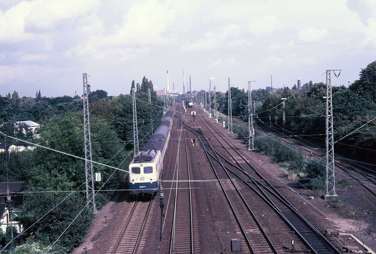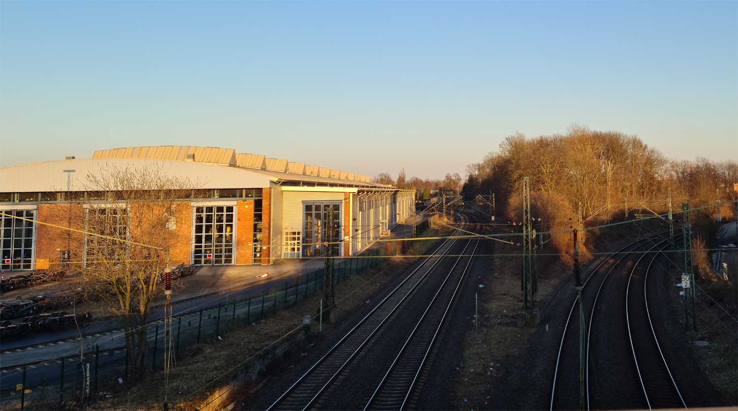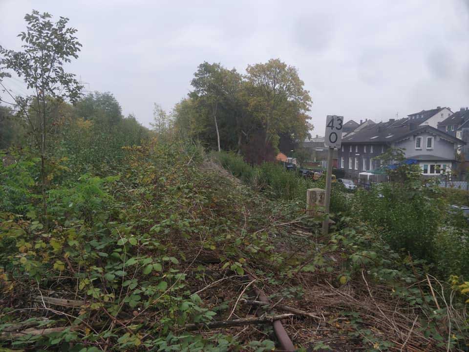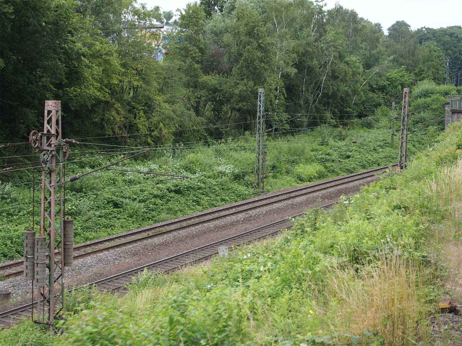 km 25,6 (rechts hinter den Büschen) zwischen Mülheim (Ruhr) Hbf [früher:Mülheim (Ruhr)-Eppinghofen] und Mülheim (Ruhr)-Heißen