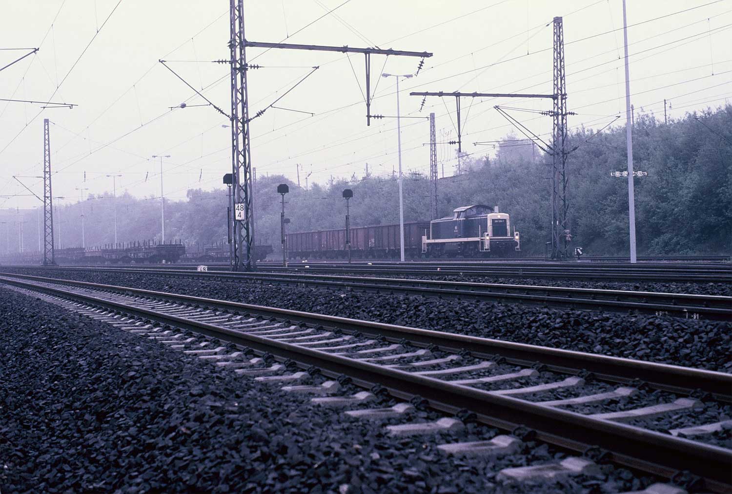 Das Gleis in der Mitte mit 052 447 gehört zur Strecke