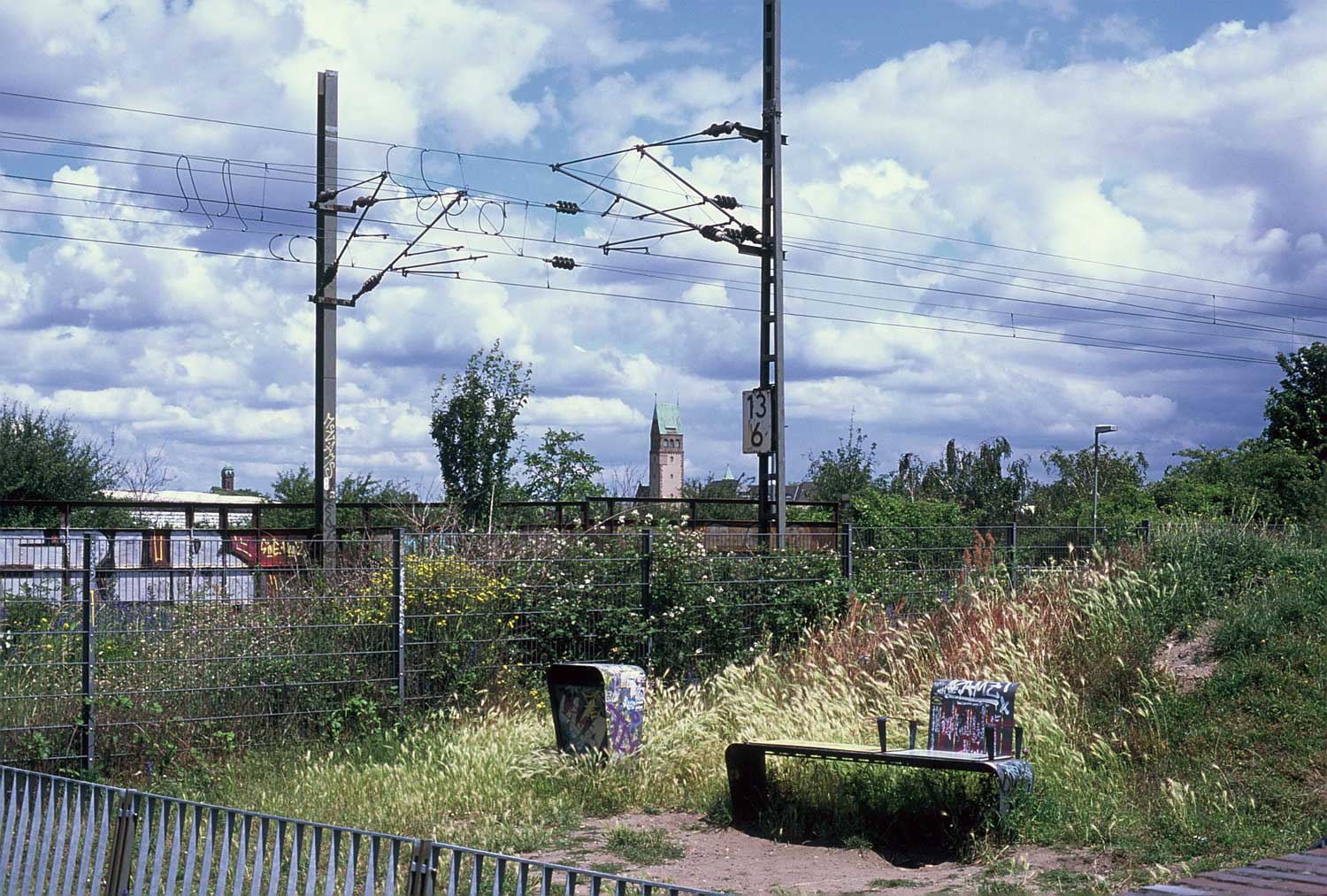 Das Gleis lag zwischen Oberleitungsmasten und Zaun.