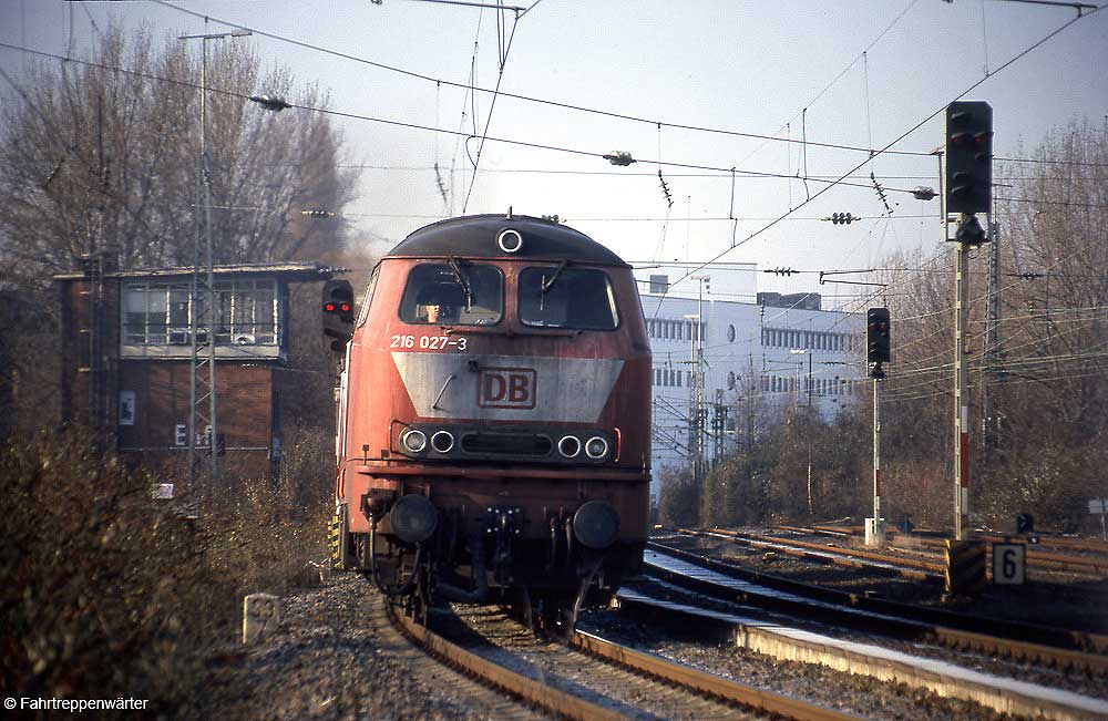 Überraschend kam am 11.12.2002 die 216 079 als Lz durch den Bahnhof Richtung Essen-Kray Nord gefahren.