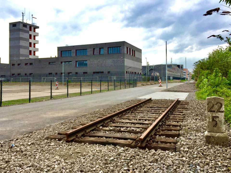 Mittig das Gleis von und nach Dortmund-Huckrade Süd
