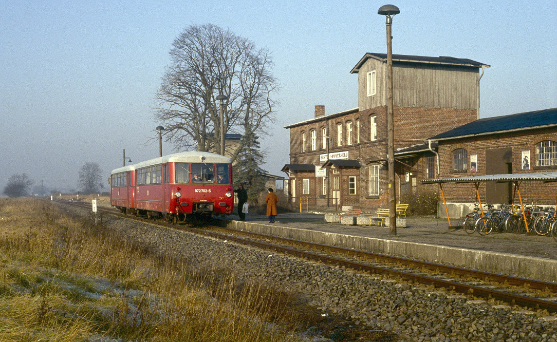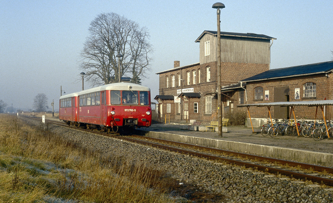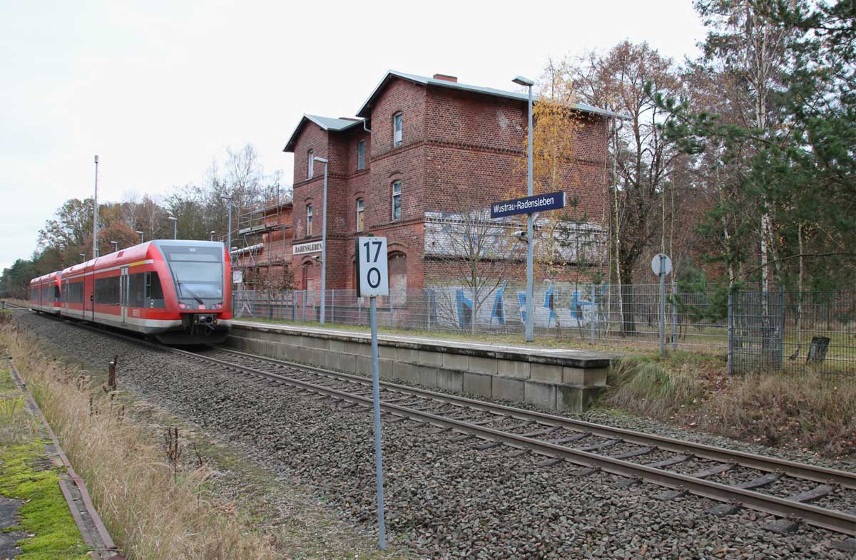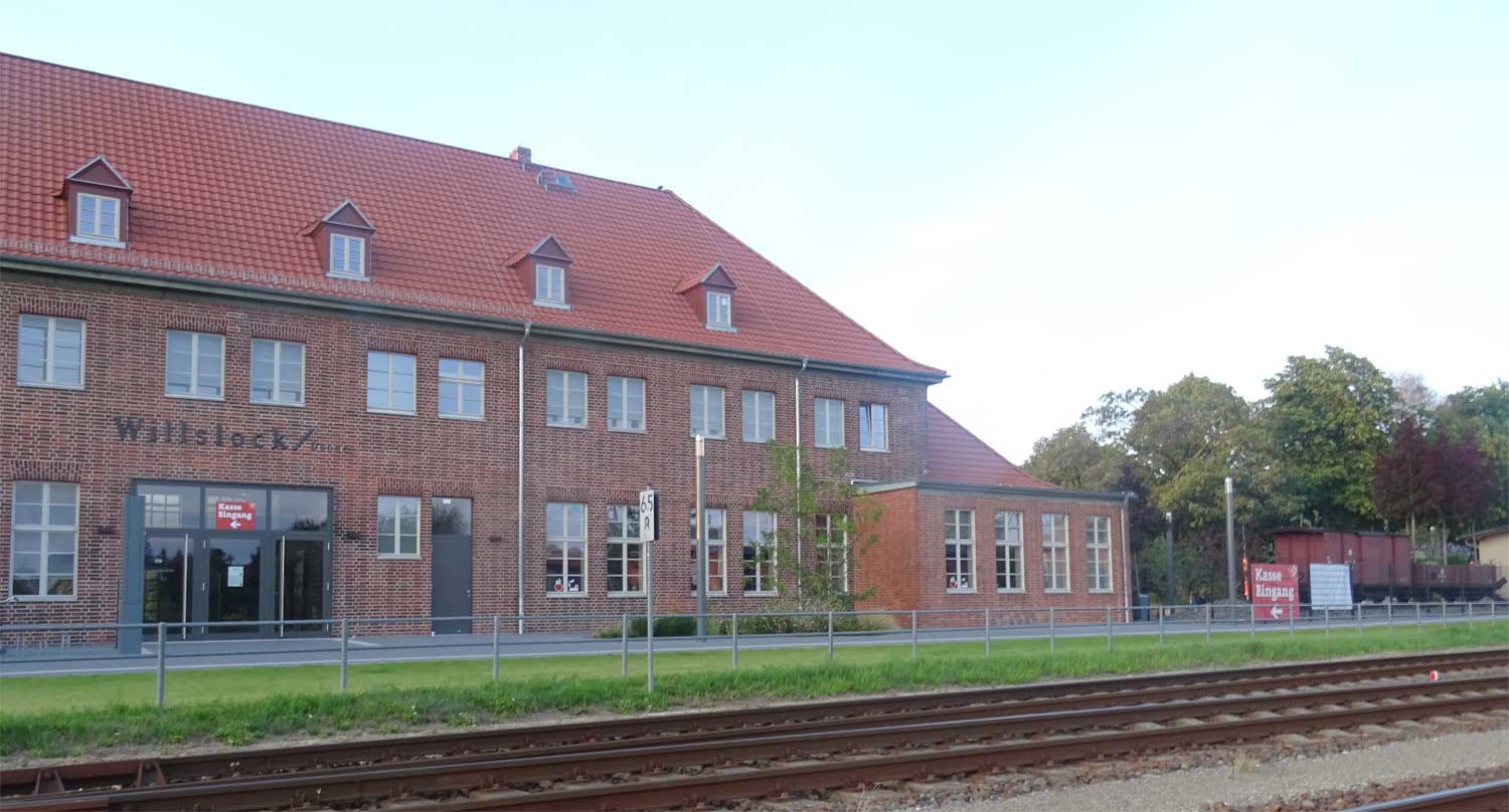 Wittstock (Dosse) | 65,82 | km 55,47 der Strecke Wittenberge 0,0 - Perleberg 10,54 - Pritzwalk 35,41 - Wittstock (Dosse) 55,47 - ehemalige Landesgrenze Preußen/Mecklenburg (bei Buschof) km 73,25 = [km 0,0 - Buschhof 0,15 - Neustrelitz Süd 30,68 - Thurow (Meckl) 38,58 - Streckenunterbrechung bis Strasburg |