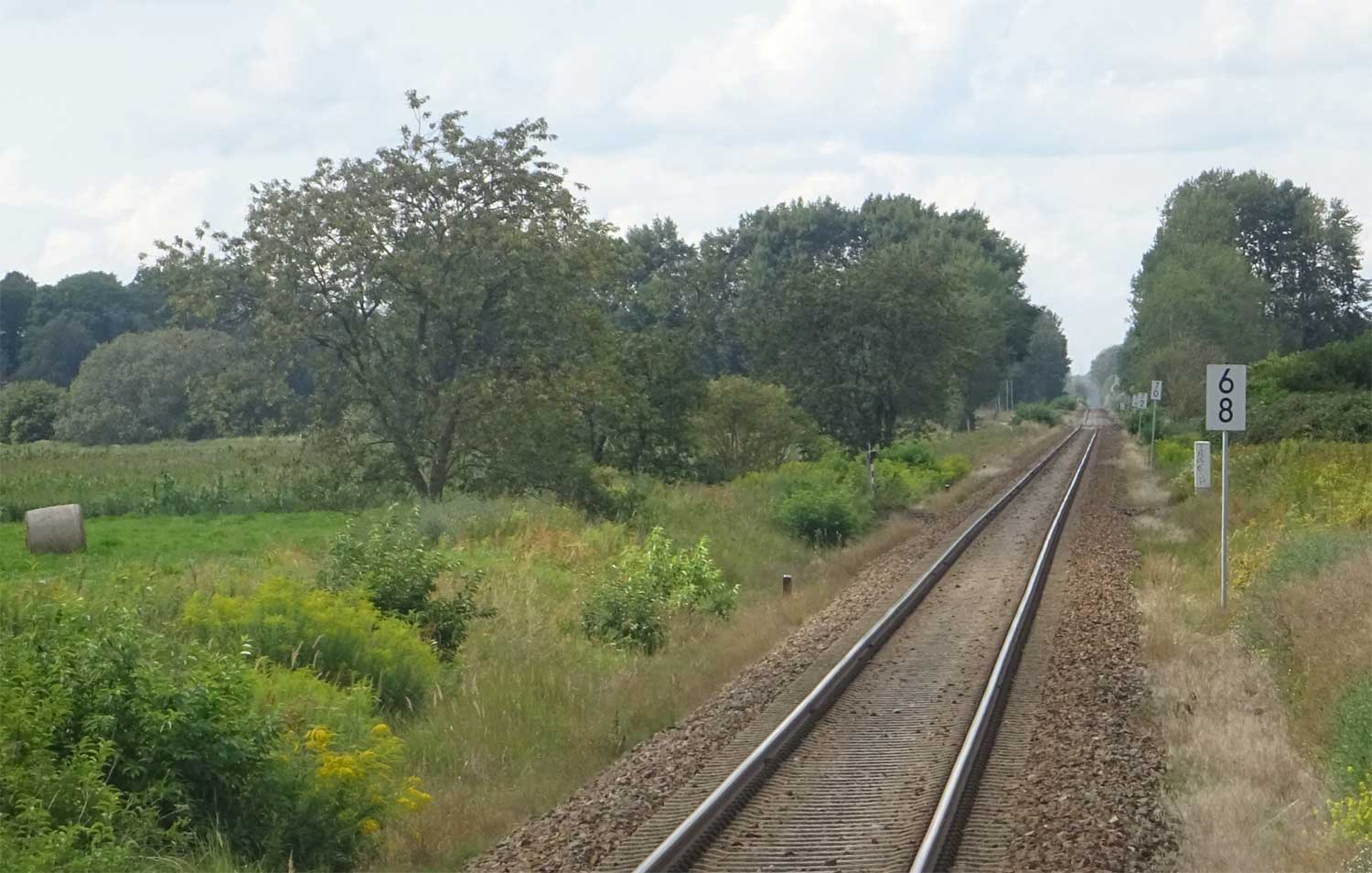 Rechts km 30,8 der Strecke Neustadt (Dosse) 0,0 - Neuruppin 28,43 - Herzberg 43,36