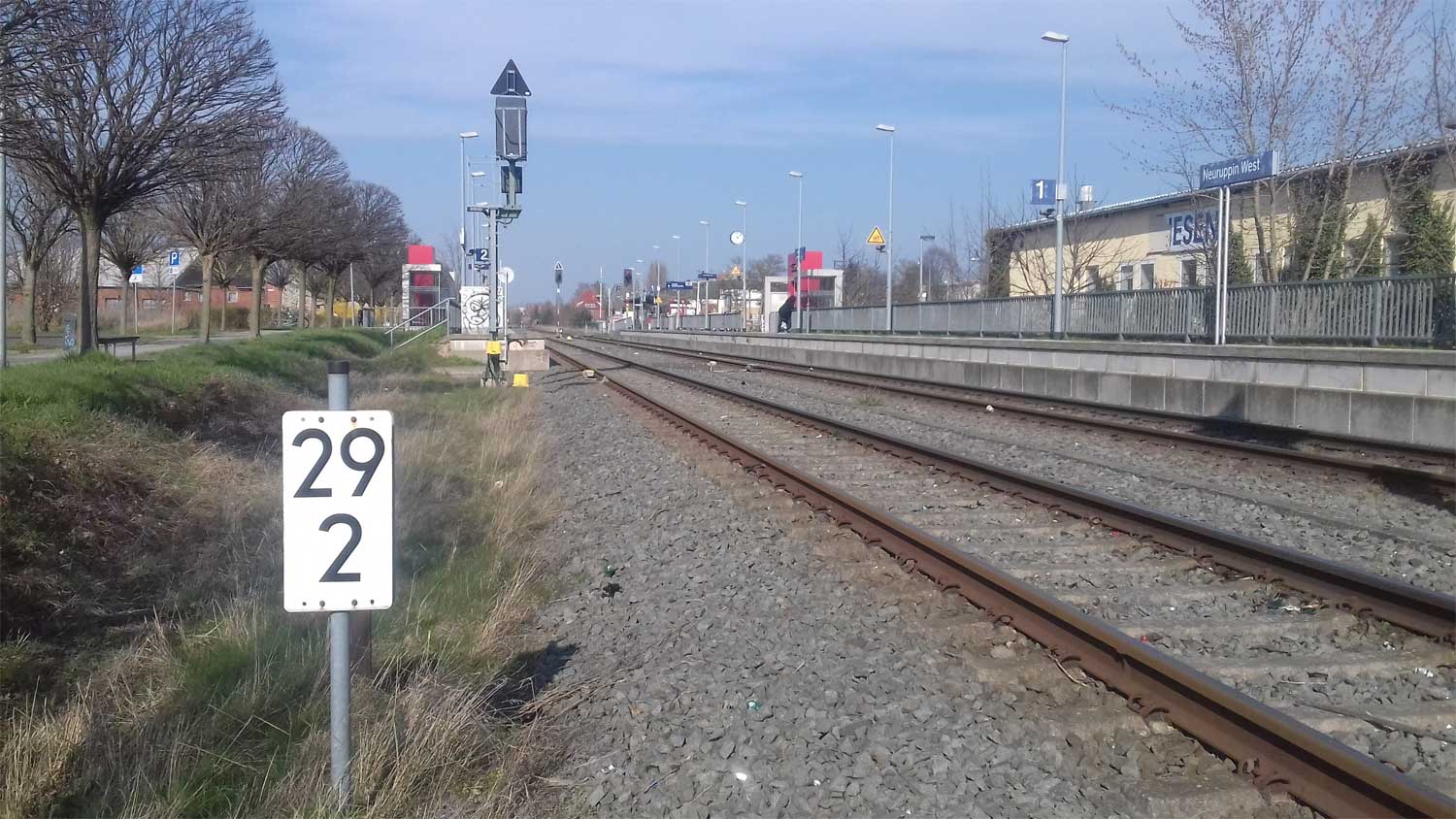 Neuruppin West | 29,12 | km 28,05 der Strecke Neustadt (Dosse) 0,0 - Neuruppin 28,6 - Herzberg 42,99 (6946) |