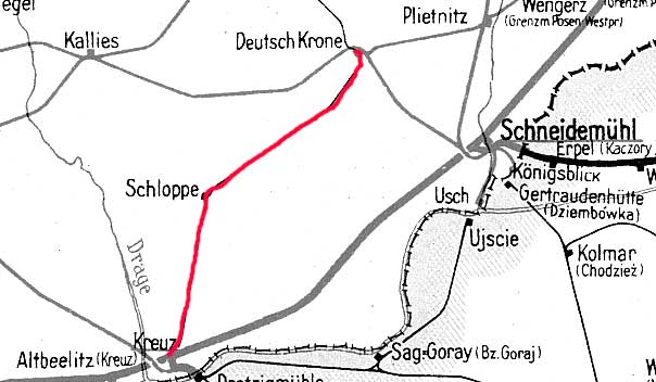 Kreuz 0,0 - Schloppe 25,4 - Deutsch Krone Süd 60,2 (Kleinbahn Kreuz–Schloppe–Deutsch Krone)