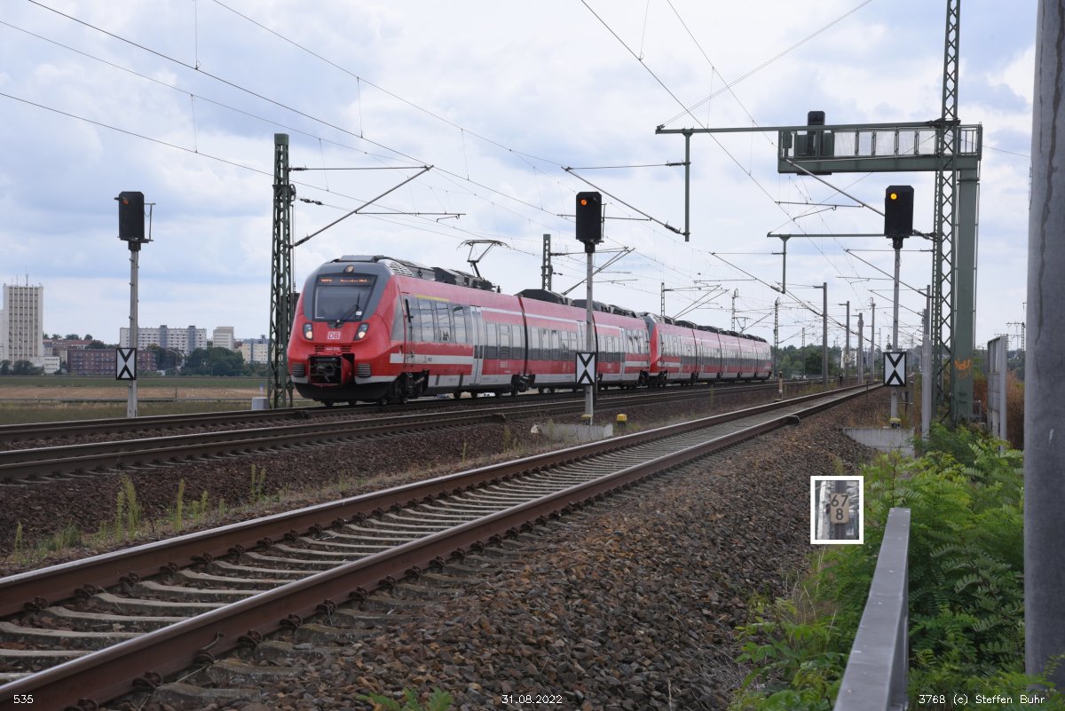 km 81,26 der Strecke (Biederitz 0,68) - ehem. Landesgrenze Preußen/ Anhalt km 30,32 = km 0,0 - Bk Trebnitz 0,004 - Zerbst 4,87 - Dessau Hbf 22,96 - Bitterfeld 48,51 - Leipzig Hbf 81,26 (siehe auch Tabelle 4, Ziffer 1)