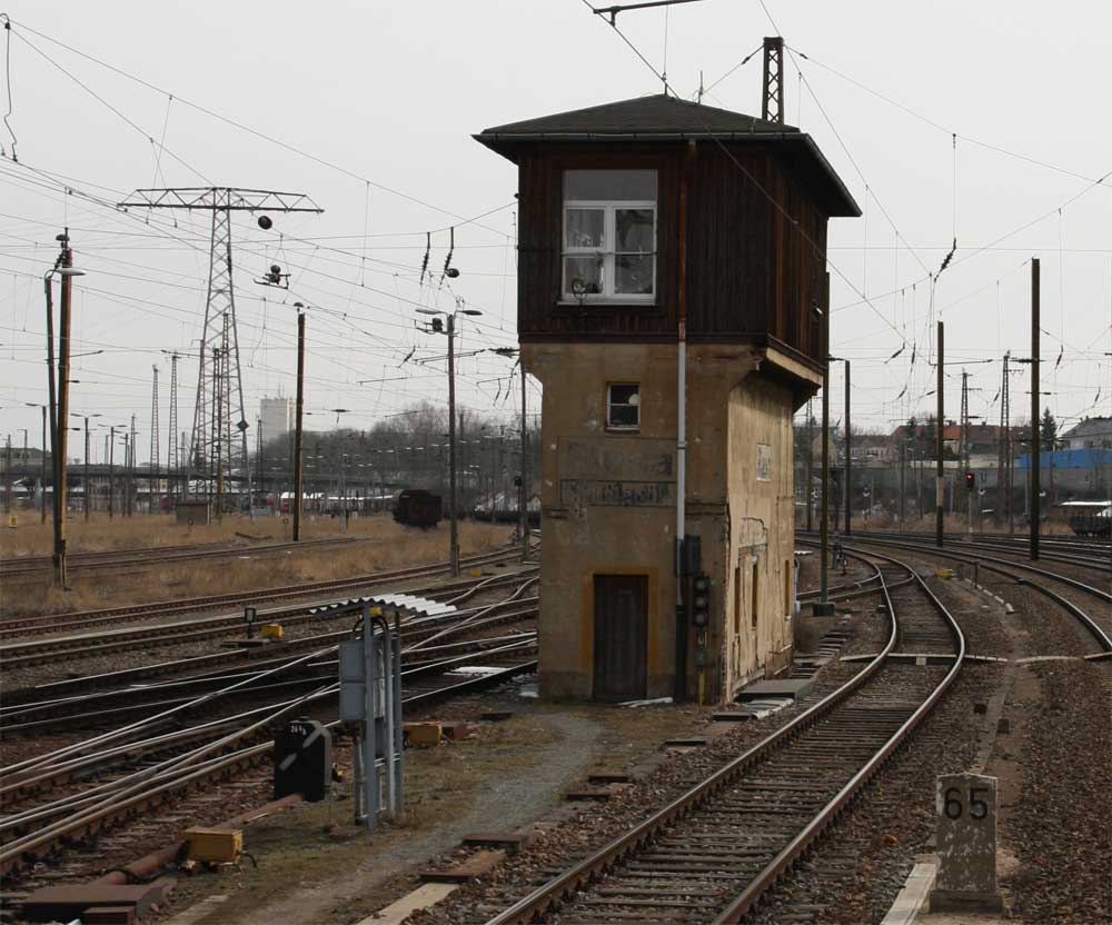 km 115,8 (Stein rechts) in Dresden-Neustadt - E77 und Stellwerk B5