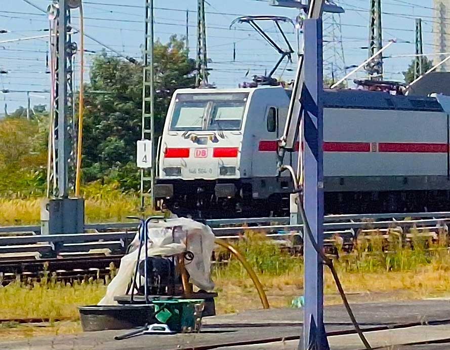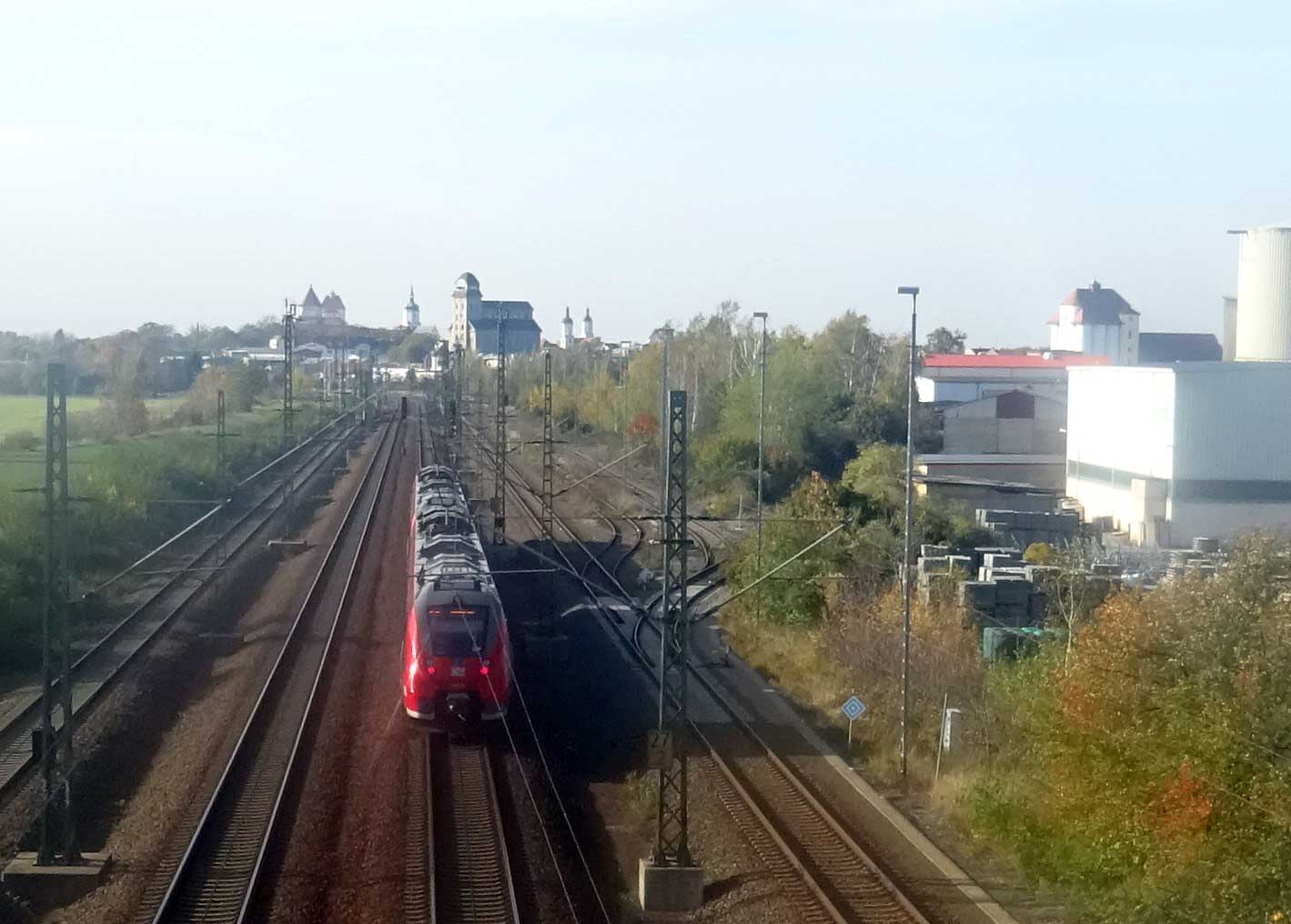km 109,7 in Radebeul Ost - RE 18 nach Cottbus am Schmalspur-Lokschuppen