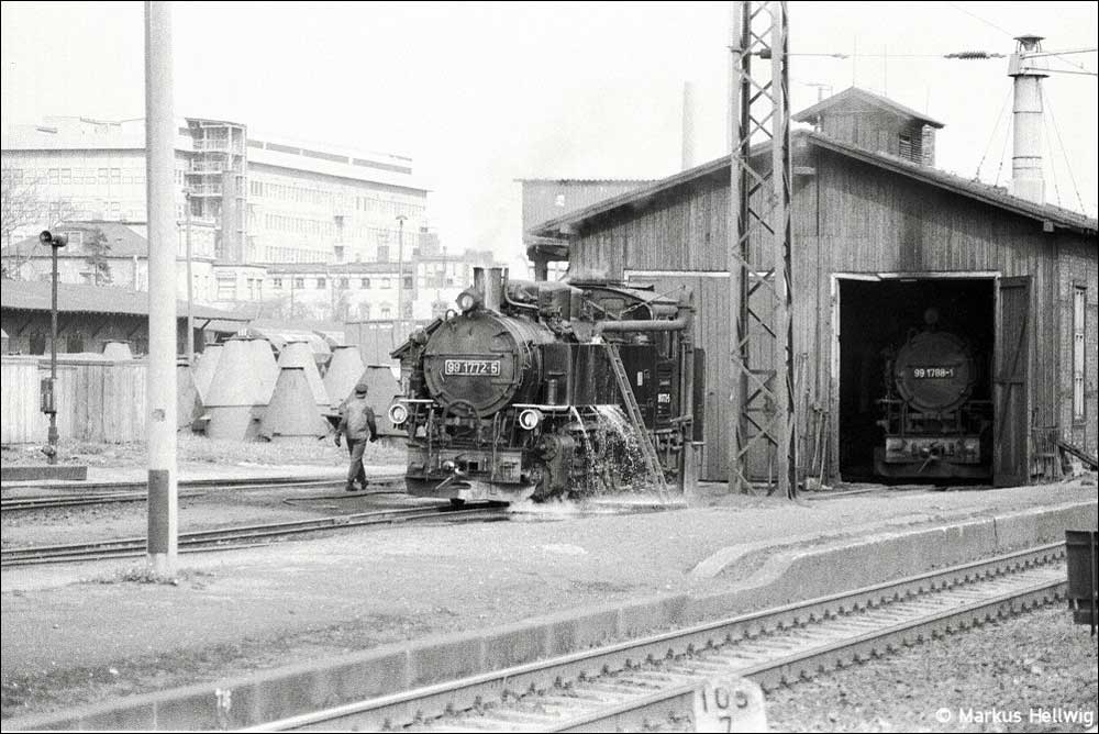 Im Hintergrund die Lok 99 1796 der Schmalspurbahn Radebeul Ost 0,06 - Radeberg 16,55 Spurweite 750 mm (Lößnitzdackel)