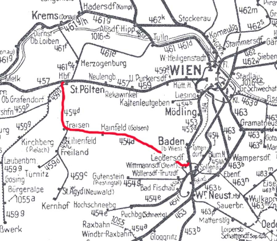 Leobersdorf 0,0 - Wittmannsdorf 2,554 - Hainfeld 43,905 - Traisen 56,493 - St