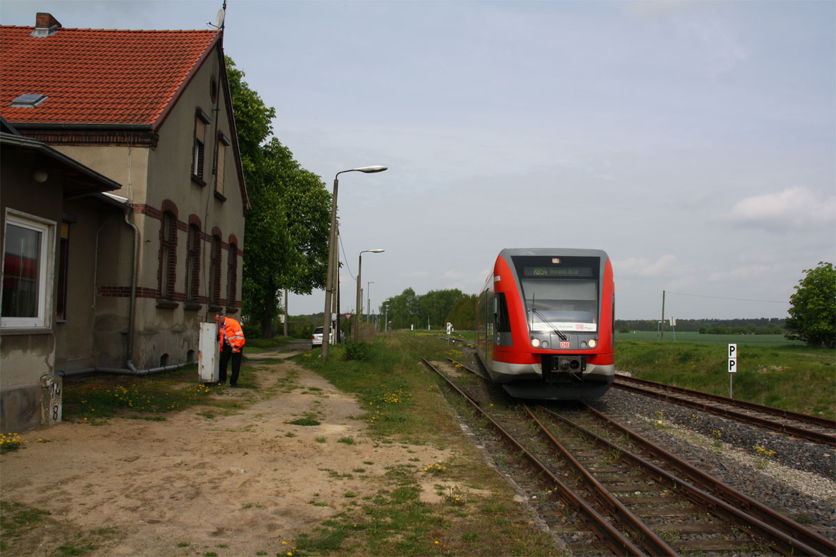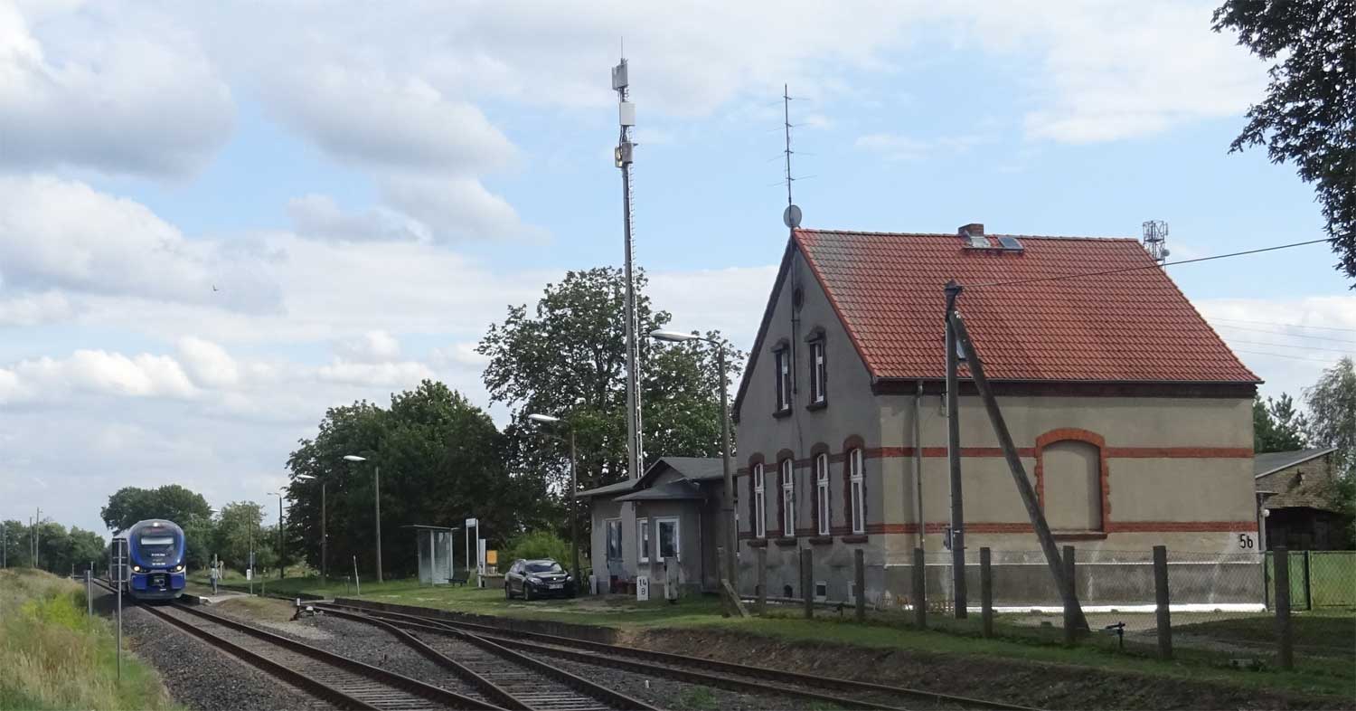 km 14,8 in Herzberg (Mark) - RB kommt aus Ri Rheinsberg und fährt dann in Ri Neuruppin