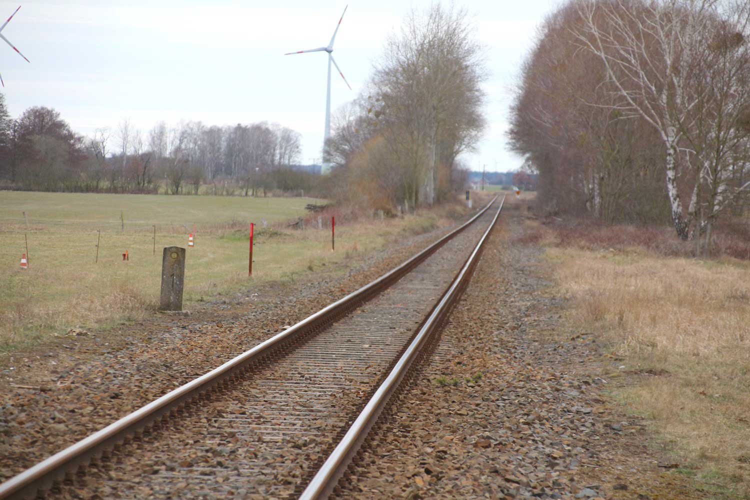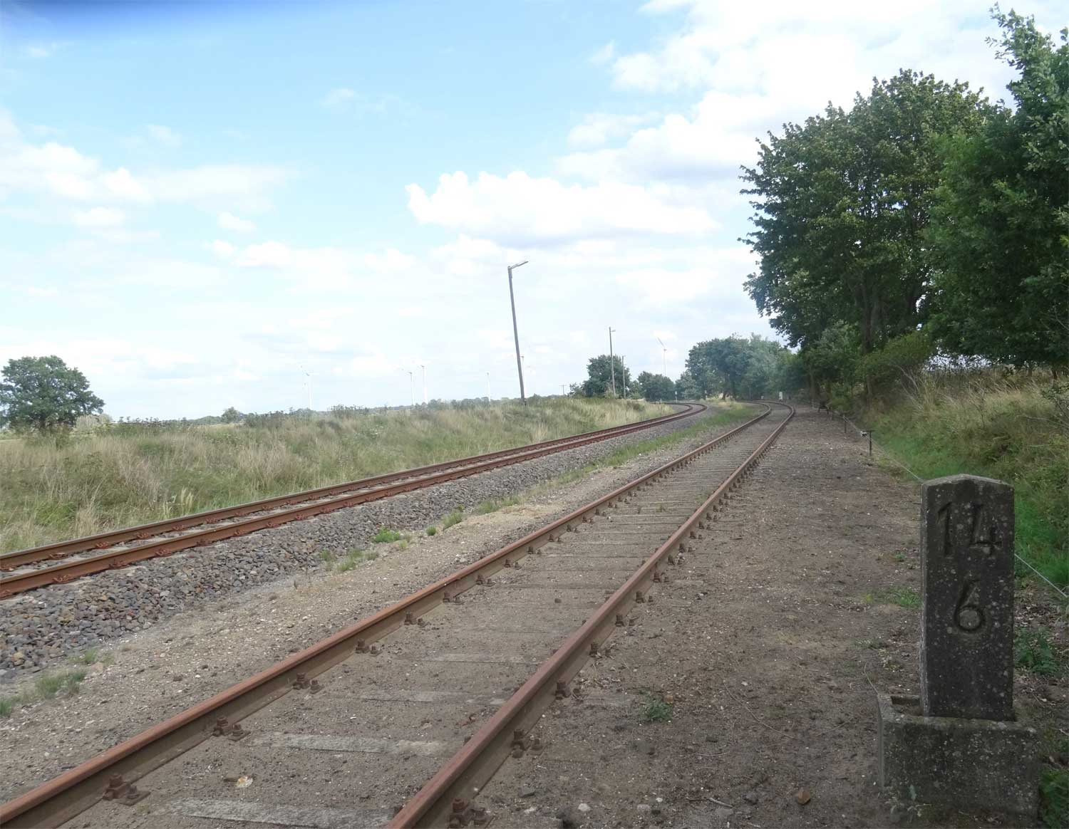 Links - km 43,0 der Strecke Neustadt (Dosse) 0,0 - Neuruppin 28,43 - Herzberg 43,36