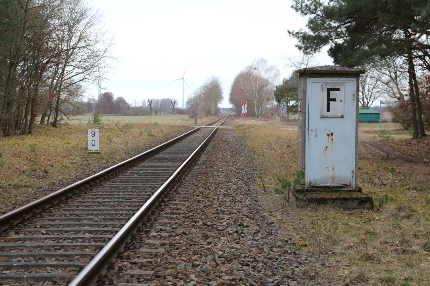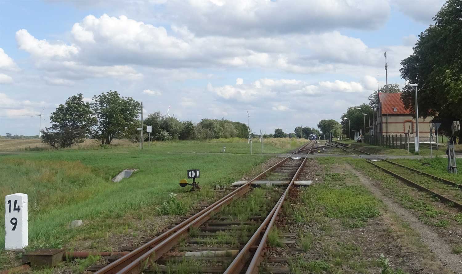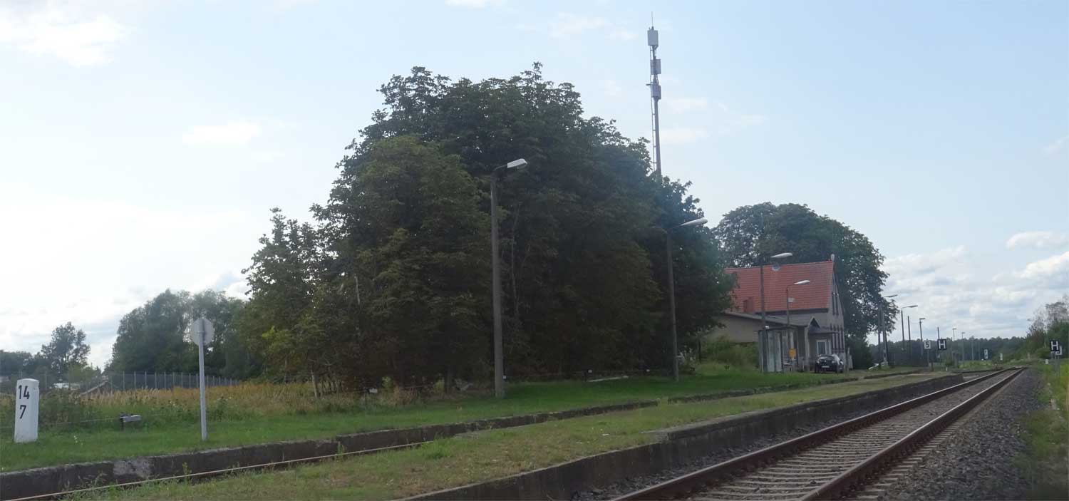 km 44,25 der Strecke (Berlin Nordbf 0,0) - Löwenberg (Mark) 44,25 (Abzw. von Strecke 19) - Templin 77,32 - Prenzlau 116,8 | ||