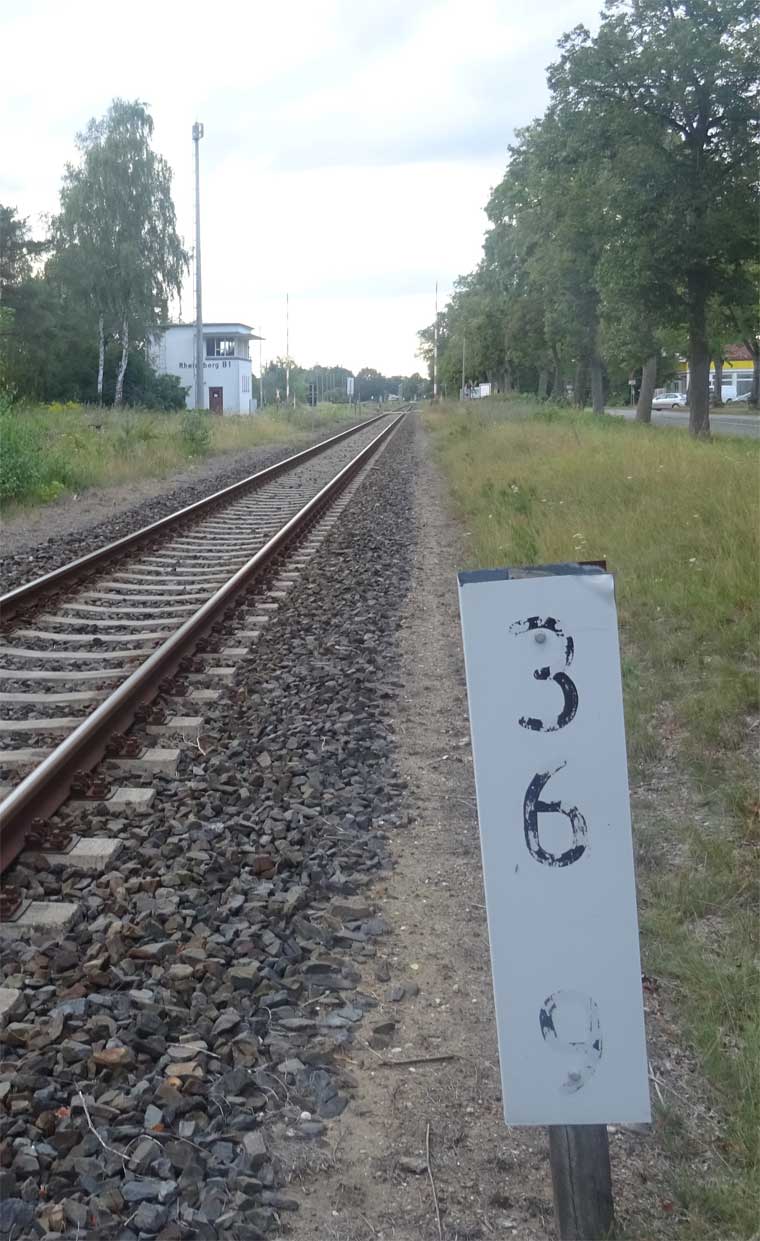 Rheinsberg (Mark) | 37,58 | km 0,0 der Strecke Rheinsberg (Mark) 0,0 - Stechlinsee 10,10 (erst seit 1958) |