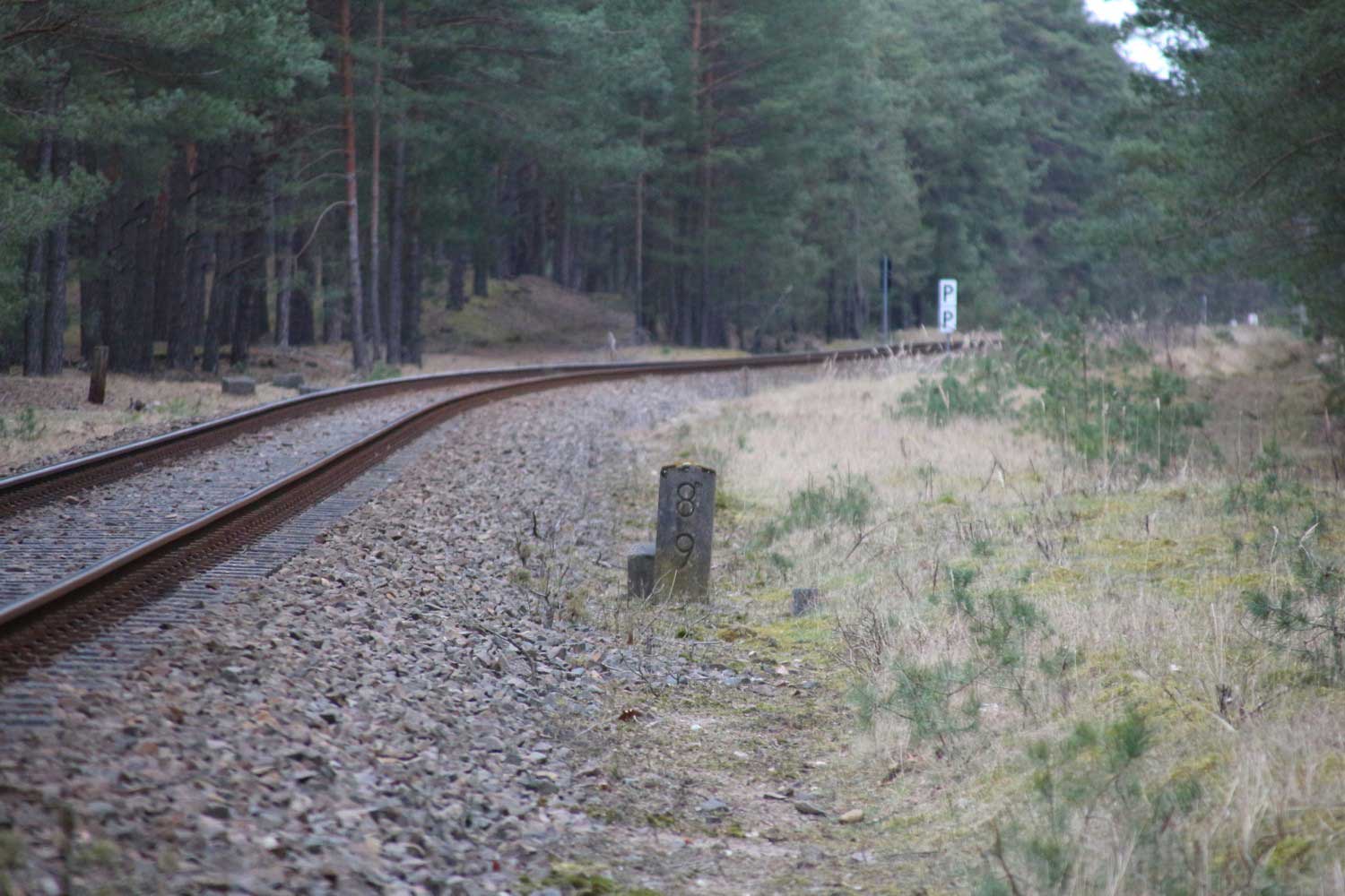 Rechts die Strecke Rheinsberg (Mark) 0,0 - Stechlinsee 10,10