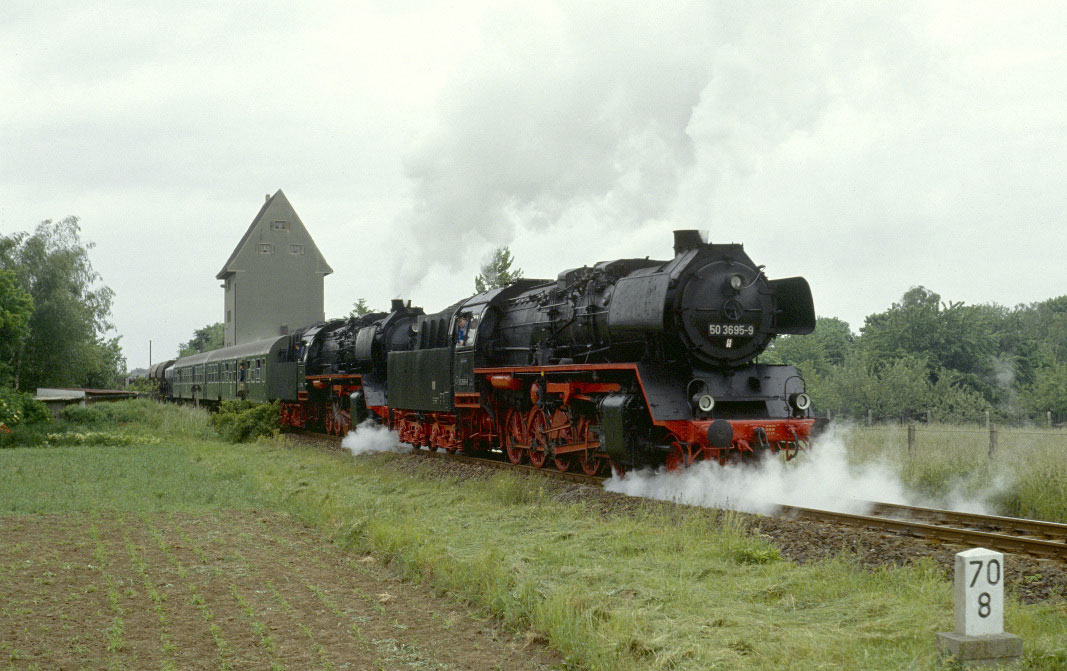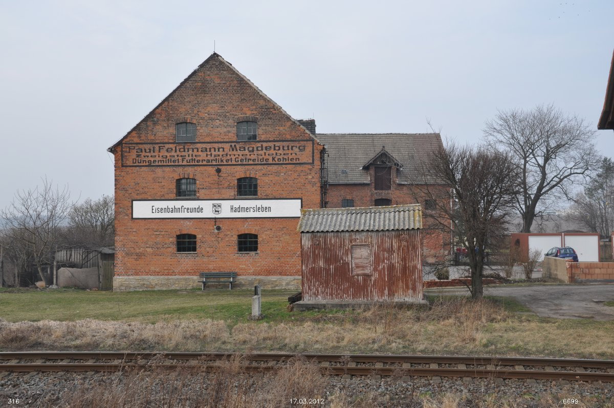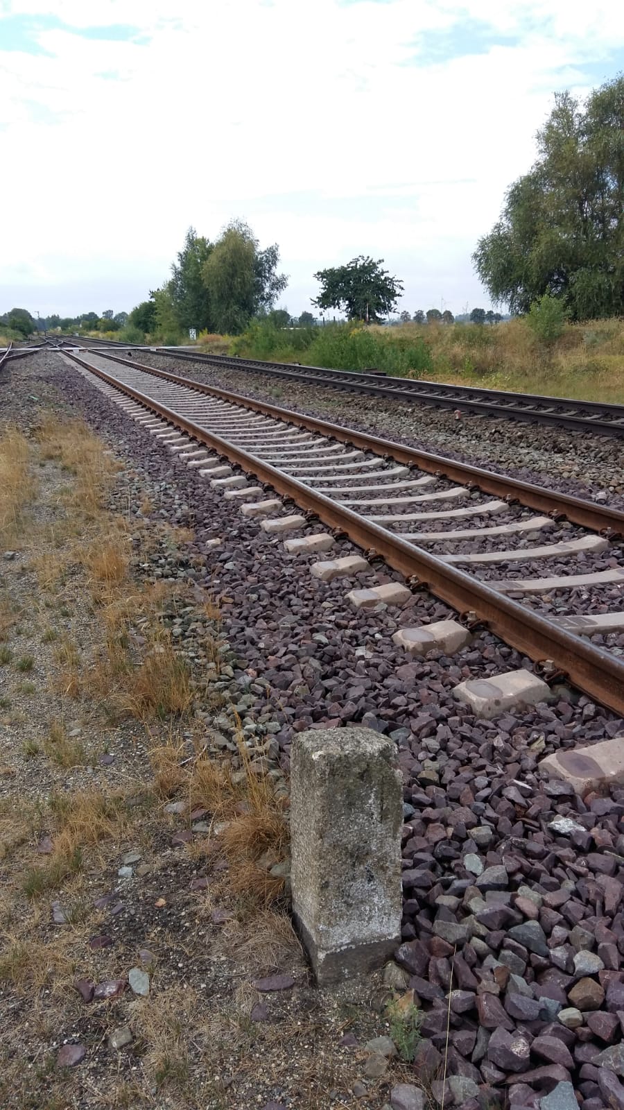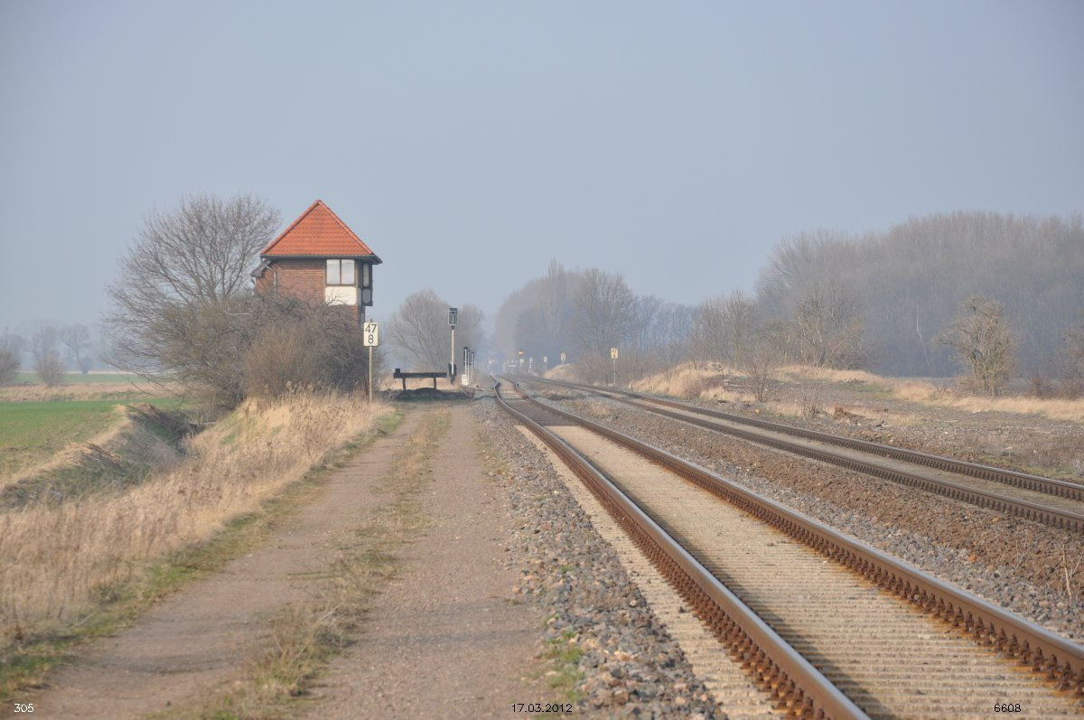 km 36,0 (Tafel) und km 36,1 (Stein) zwischen Hadmersleben und Oschersleben im Bereich des ehemaligen Gbf Oschersleben