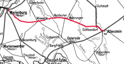 Marienburg (Westpr) 0,0 - Miswalde 38,80 - Maldeuten 55,50 - Mohrungen 66,38 - Allenstein Hbf 113,69