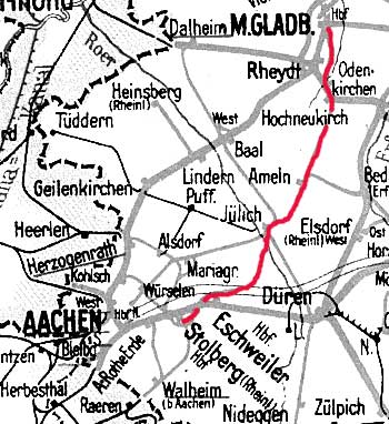 Mönchengladbach Hbf 0,11 - Odenkirchen 6,88 - Hochneukirch 11,81 - Jülich 36,04 - Stolberg (Rheinl) Hbf 57,66