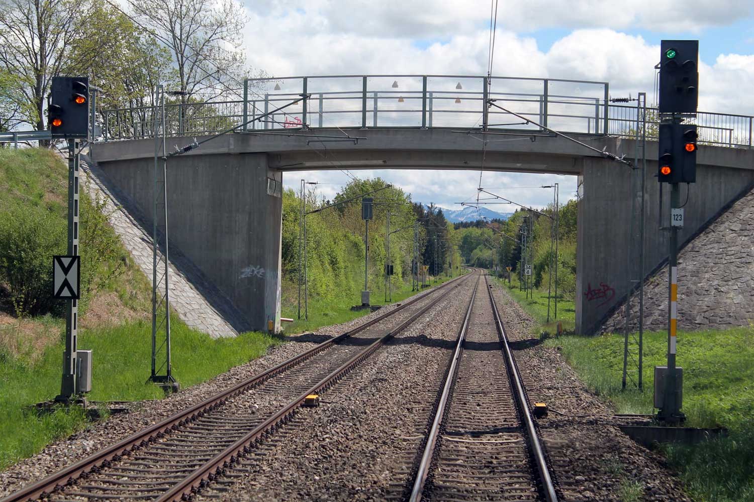München-Laim Rbf - München-Mittersendling (5530) eingleisig mit km 2,4 (Tafel) und km 2,5 (Stein)