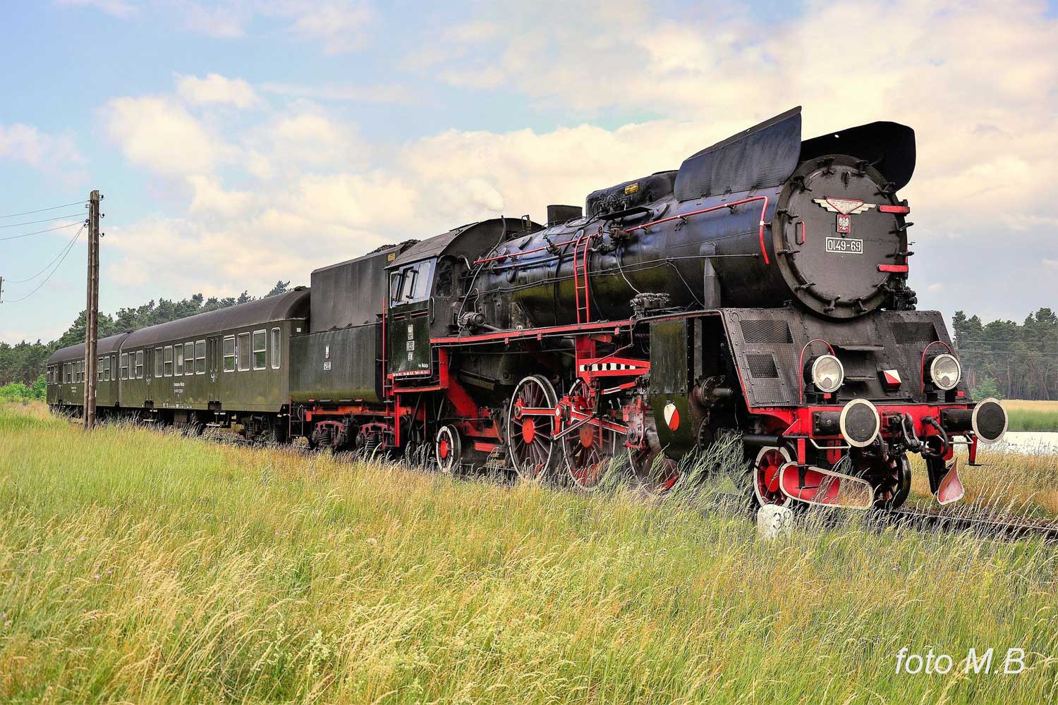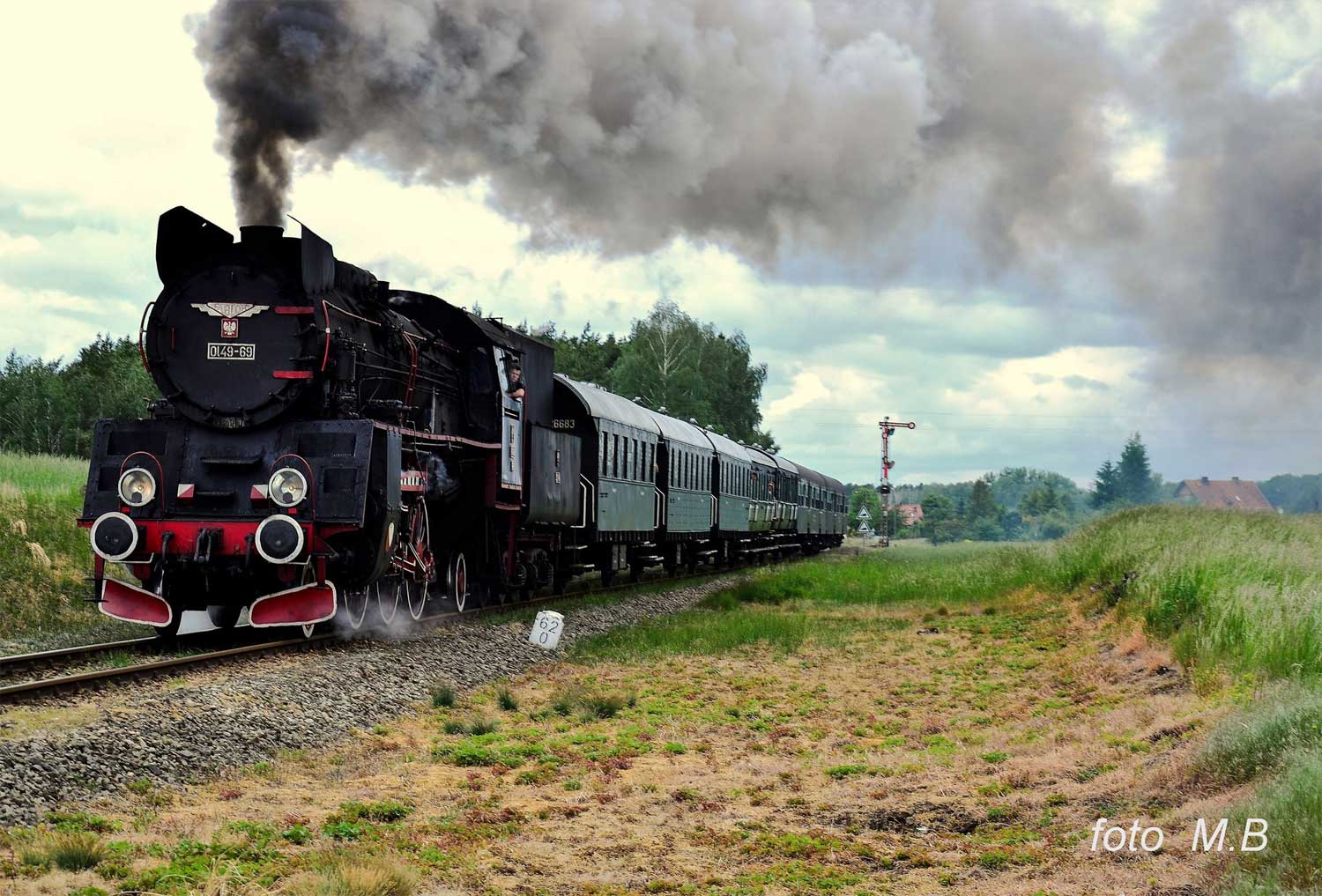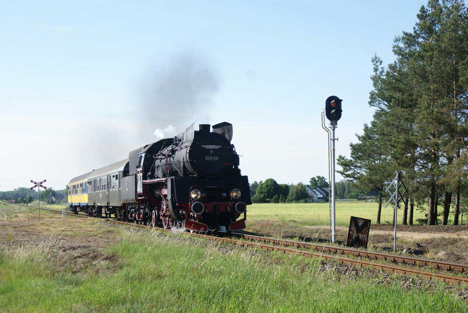 km 48,8 zwischen Wolsztyn [Wollstein (Pos)] und Tuchorza [Tannheim (Warthel)] - Ol49-69 auf Probefahrt
