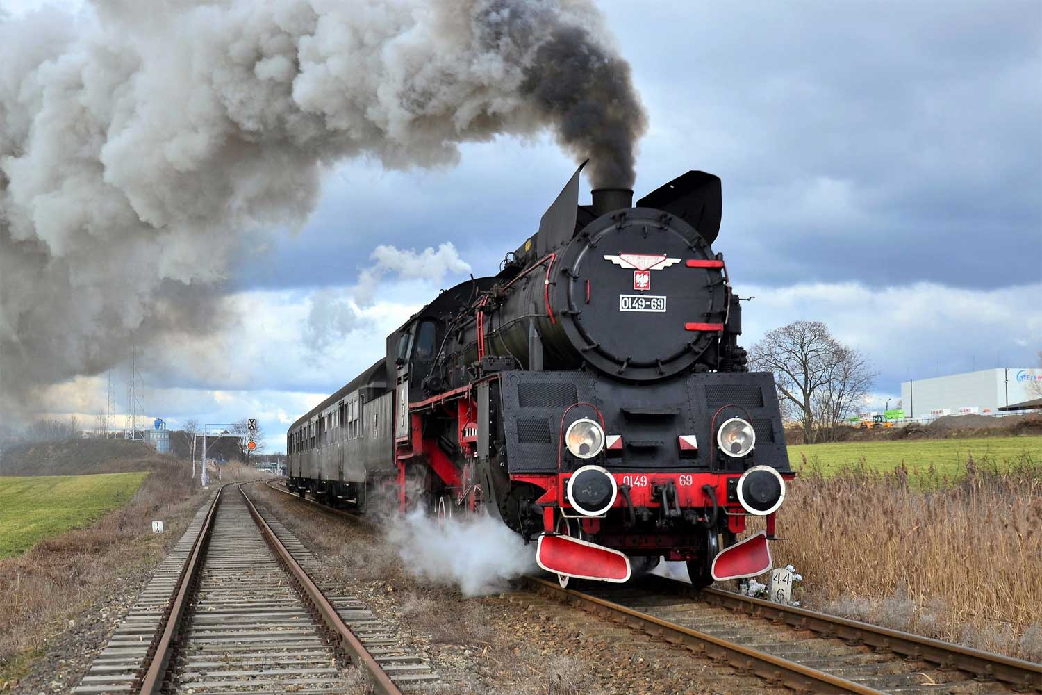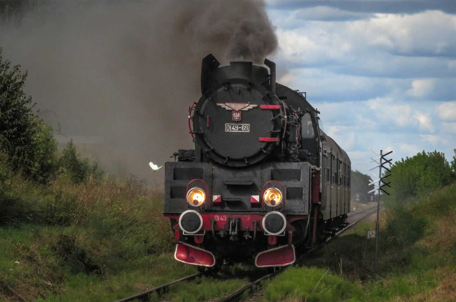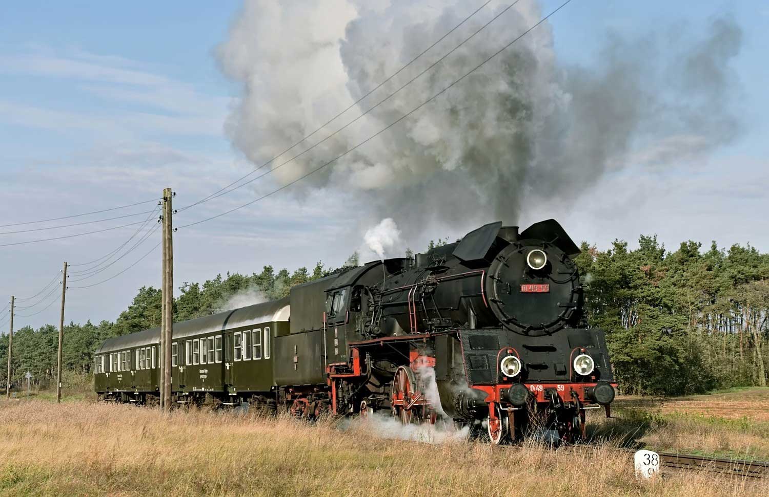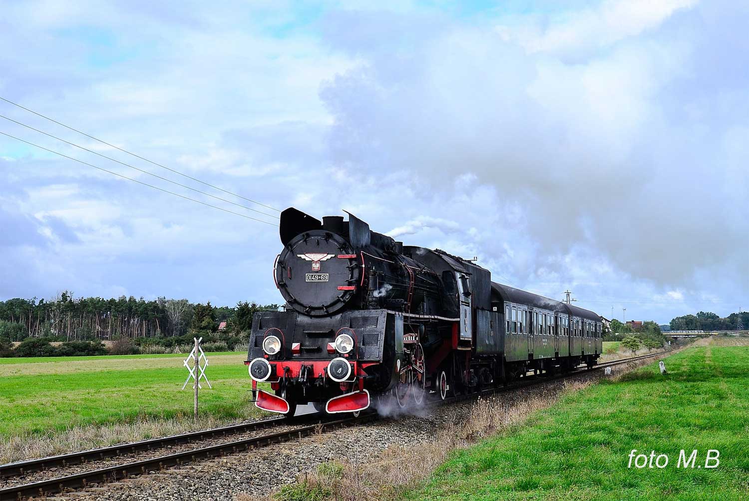 km 48,8 zwischen Wolsztyn [Wollstein (Pos)] und Tuchorza [Tannheim (Warthel)] - Ol49-69 auf Probefahrt